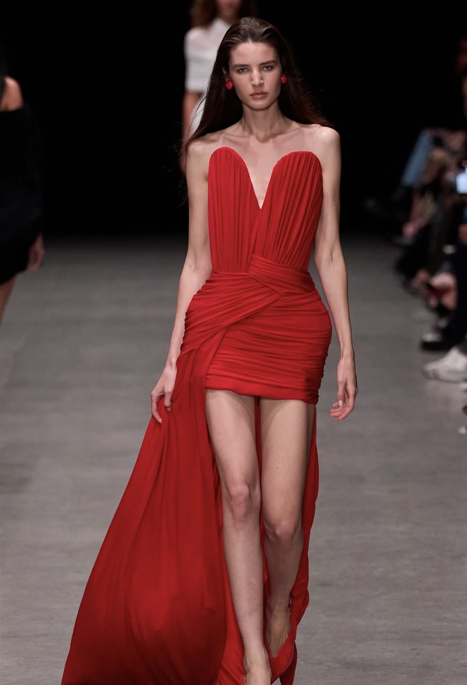 الألوان تنقلت بين الدرجات الهادئة واللمسات الجريئة، فجمعت بين الأبيض النقي والأزرق البارد من جهة، وألوان أكثر دفئاً مثل الأحمر والذهبي من جهة أخرى. كما برزت التفاصيل الدقيقة في القصات والخياطات، ما جعل القطع تبدو كأنها لوحات فنية تمزج بين الفكر المعاصر والحرفية العالية.