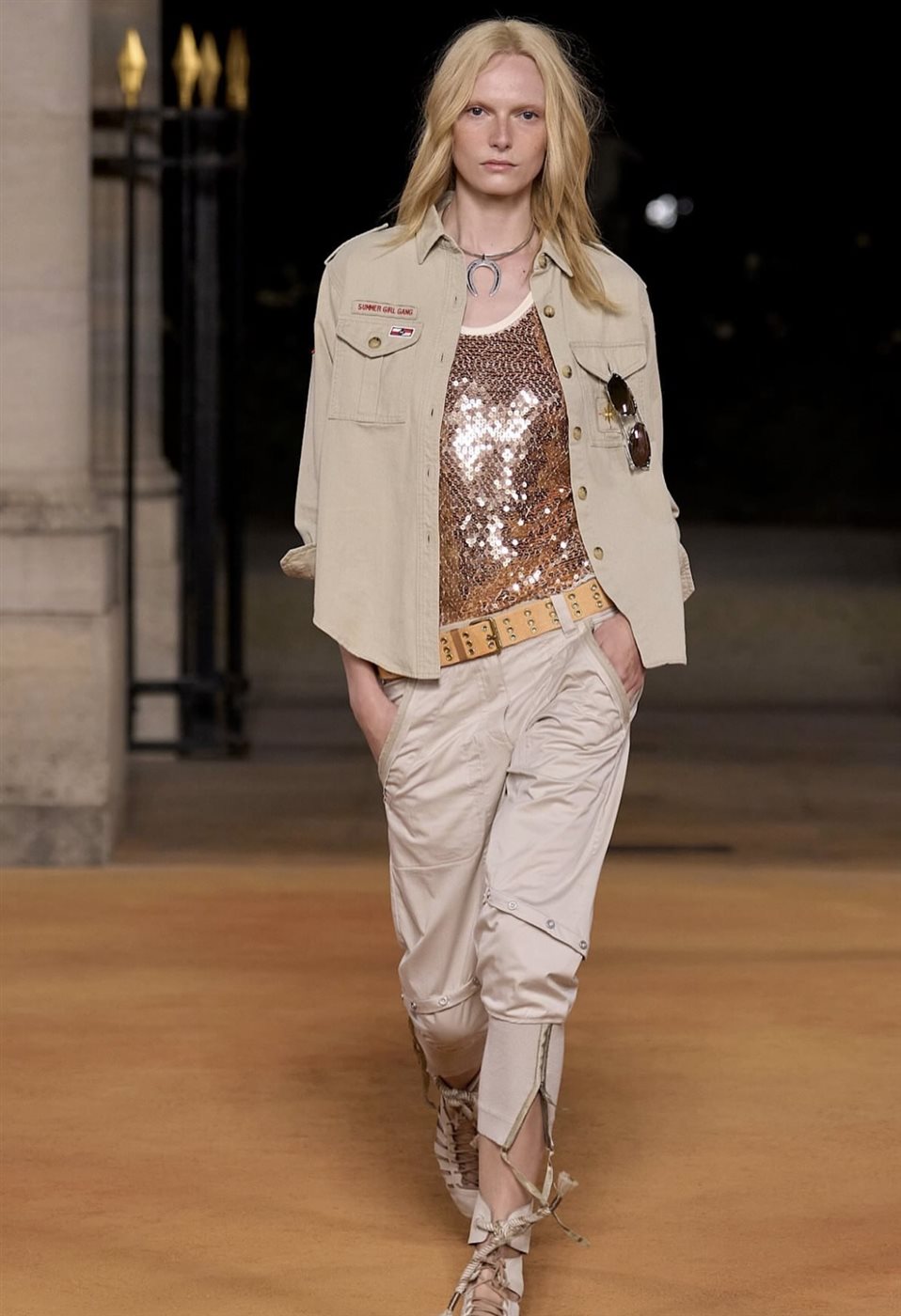 الهوية الجمالية للمجموعة جاءت واضحة: موضة تحتفي بالحرية والانطلاق، وتعيد ابتكار ملامح السفاري بعيون عصرية. فالأحزمة، والجيوب، والأقمشة العملية، تقاطعت جميعها مع البريق المعدني واللمسات اللامعة، لتؤكد أن الأناقة ليست على حساب الراحة، بل يمكن أن تكون الاثنتان في حوار متوازن.