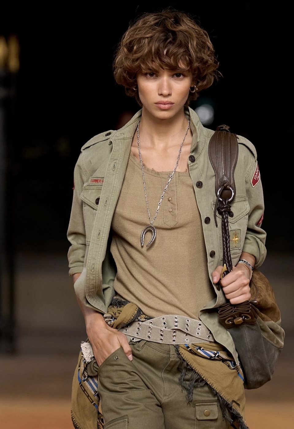 أبرز ما لفت الأنظار كان الفيست المرقع من السويد الذي أُقرن مع الكارجو الزيتية المزدانة بالأحزمة، ليخلق مظهرًا متعدد الطبقات، مدروسًا بعناية، ويعكس خبرة الدار في صياغة إطلالات ذات أبعاد بصرية غنية. أما لوحة الألوان الترابية المتجانسة، فقد عززت الإحساس بالطبيعة والانطلاق الحر، بينما ساهمت القصّات المريحة في تكريس مفهوم ماران عن أنوثة عملية لا تخضع للتقييد.