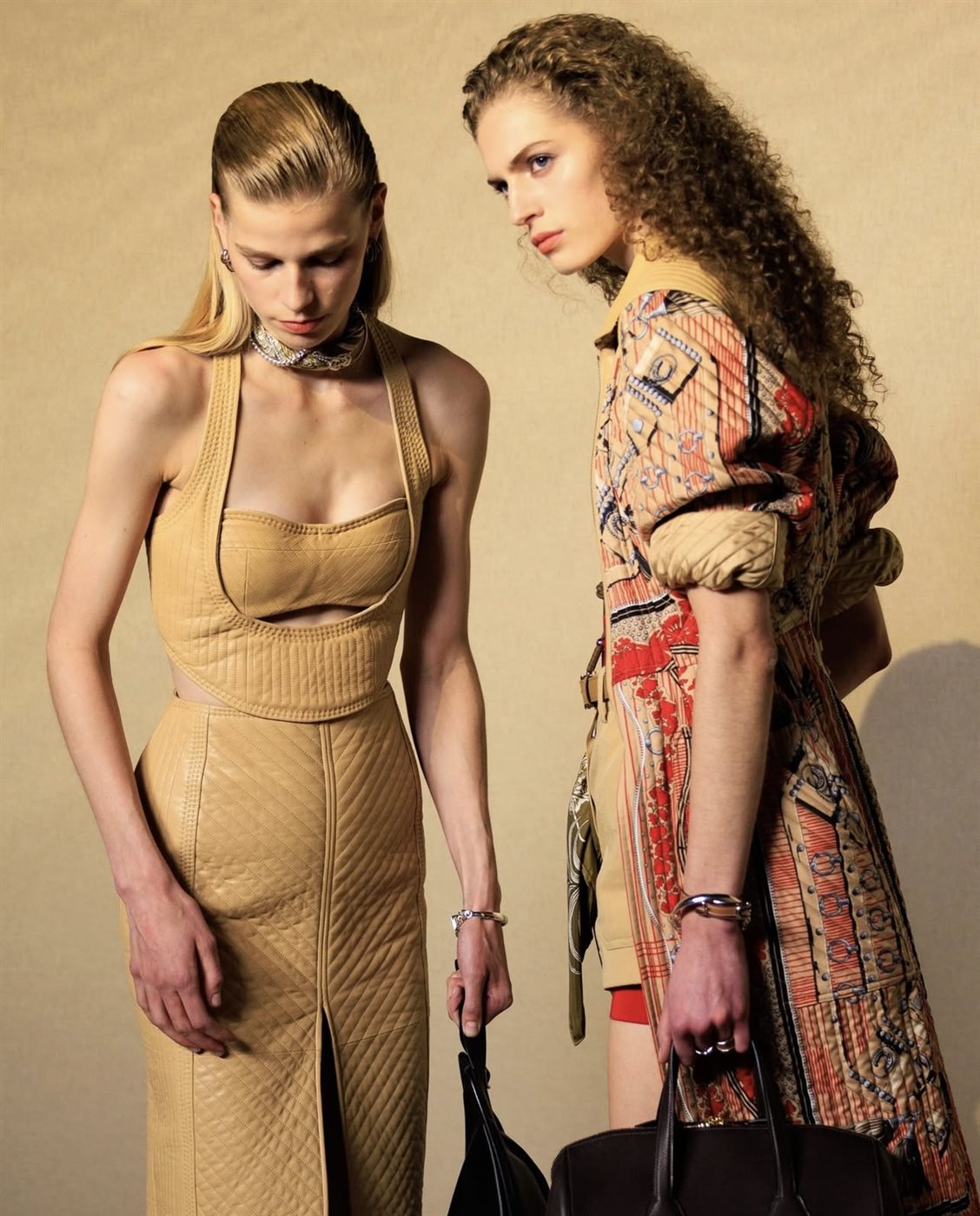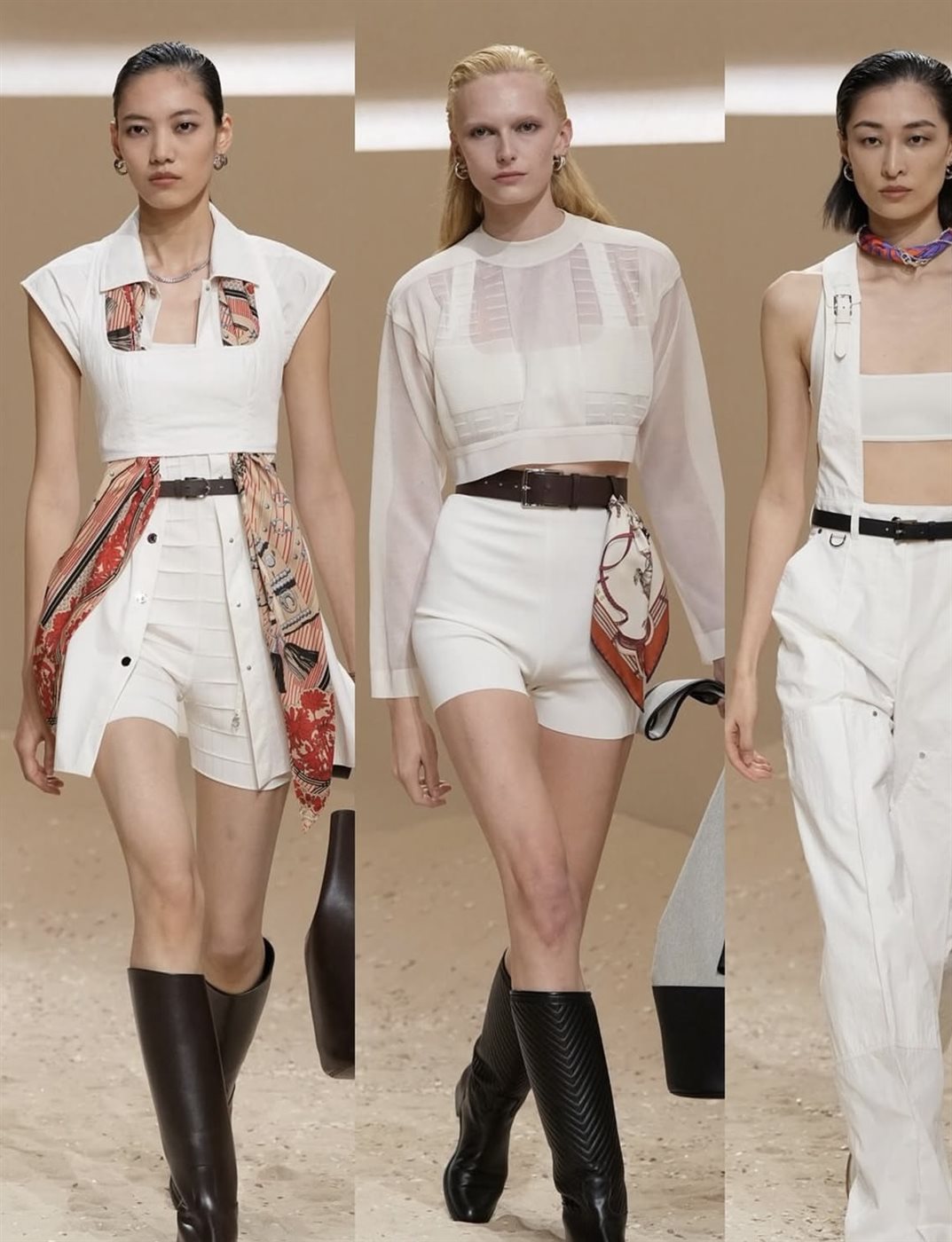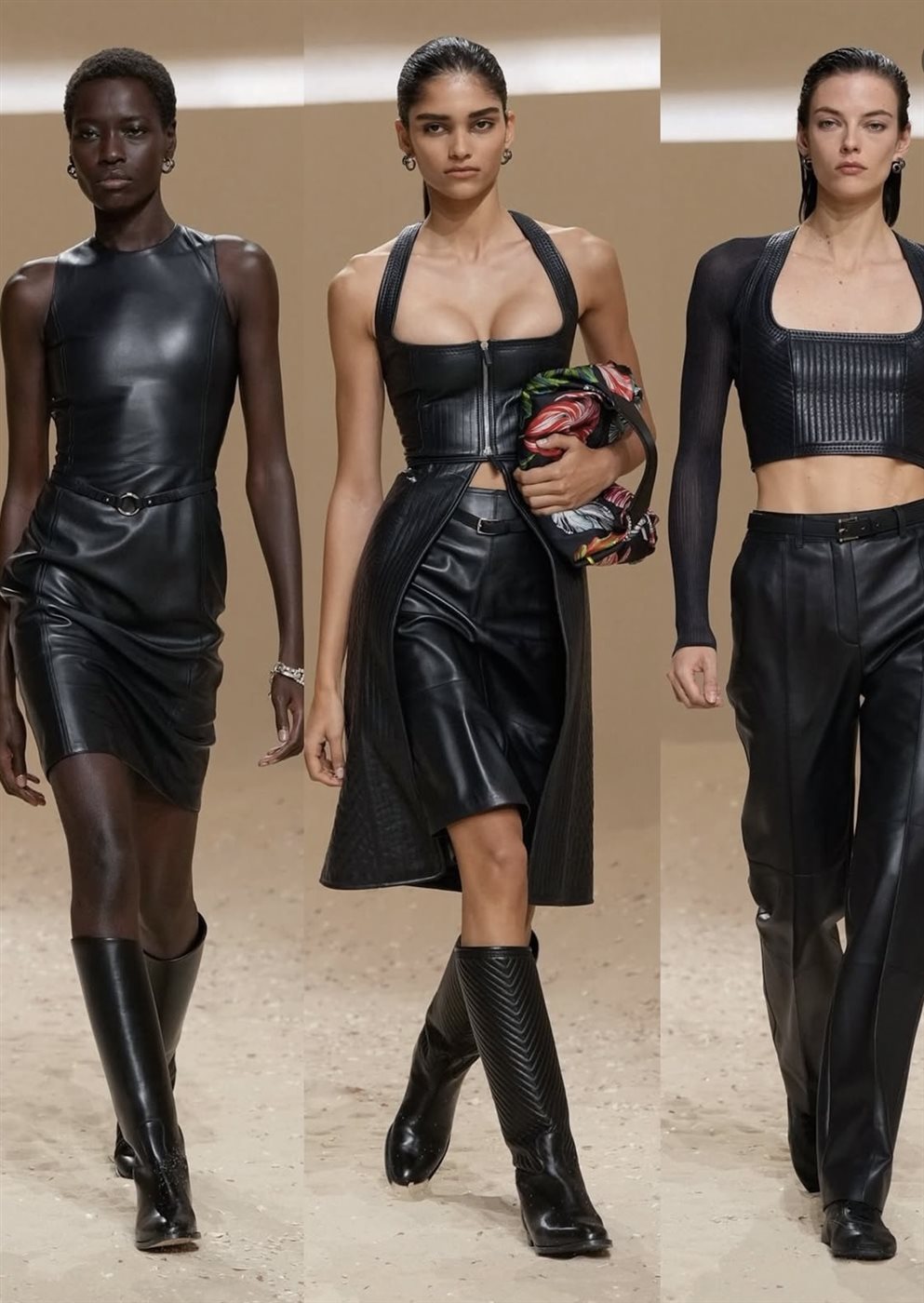 وقدّمت الدار أيضاً مجموعة من الأحذية المسطحة والصنادل الجلدية المصنوعة بحرفية عالية، إلى جانب حقائبها الأيقونية التي ظهرت بتفاصيل جديدة تعبّر عن تطور Hermès دون أن تفقد لمستها الكلاسيكية. أما الجلود، فحُوّلت إلى خامات انسيابية تواكب حركة الجسد في سلاسة وأناقة.