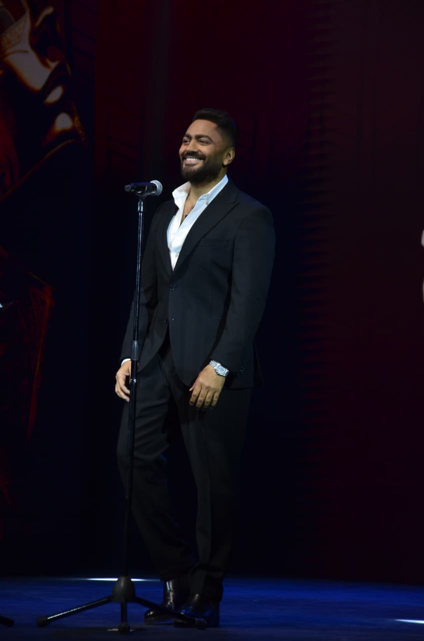 وخلال الحفل، ألقى تامر كلمة مؤثرة قال فيها: "بتشرف بحضوري النهاردة في مكان كنت فيه يومًا ما، وكنت من شباب مسرح الجامعة، وربنا كرمني بالسعي والجهد، كلكم هتنجحوا ودي سنة الحياة، وهتبقوا مكان العظماء. تحية من قلبي لكل العظماء."