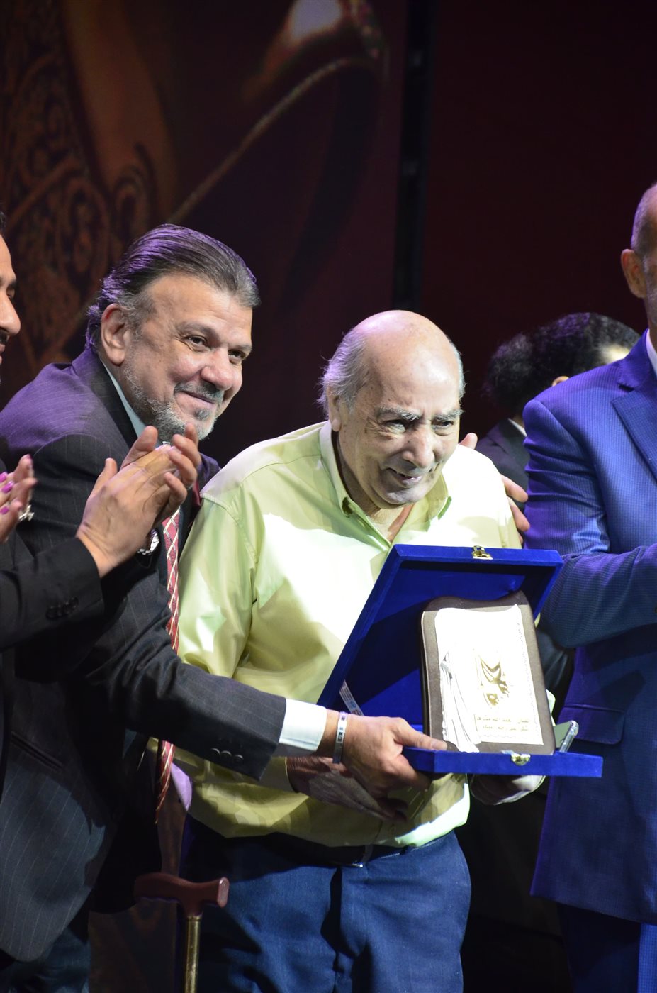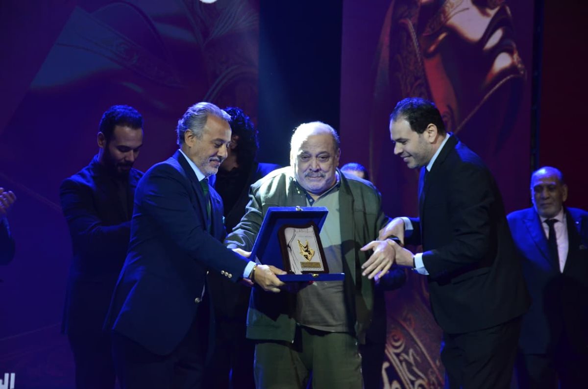 ثم صعد أعضاء مجلس نقابة المهن التمثيلية بالكامل إلى خشبة المسرح لتقديم دروع التكريم لثلاثة من كبار الفنانين الذين أثروا الساحة الفنية بأعمالهم الخالدة.