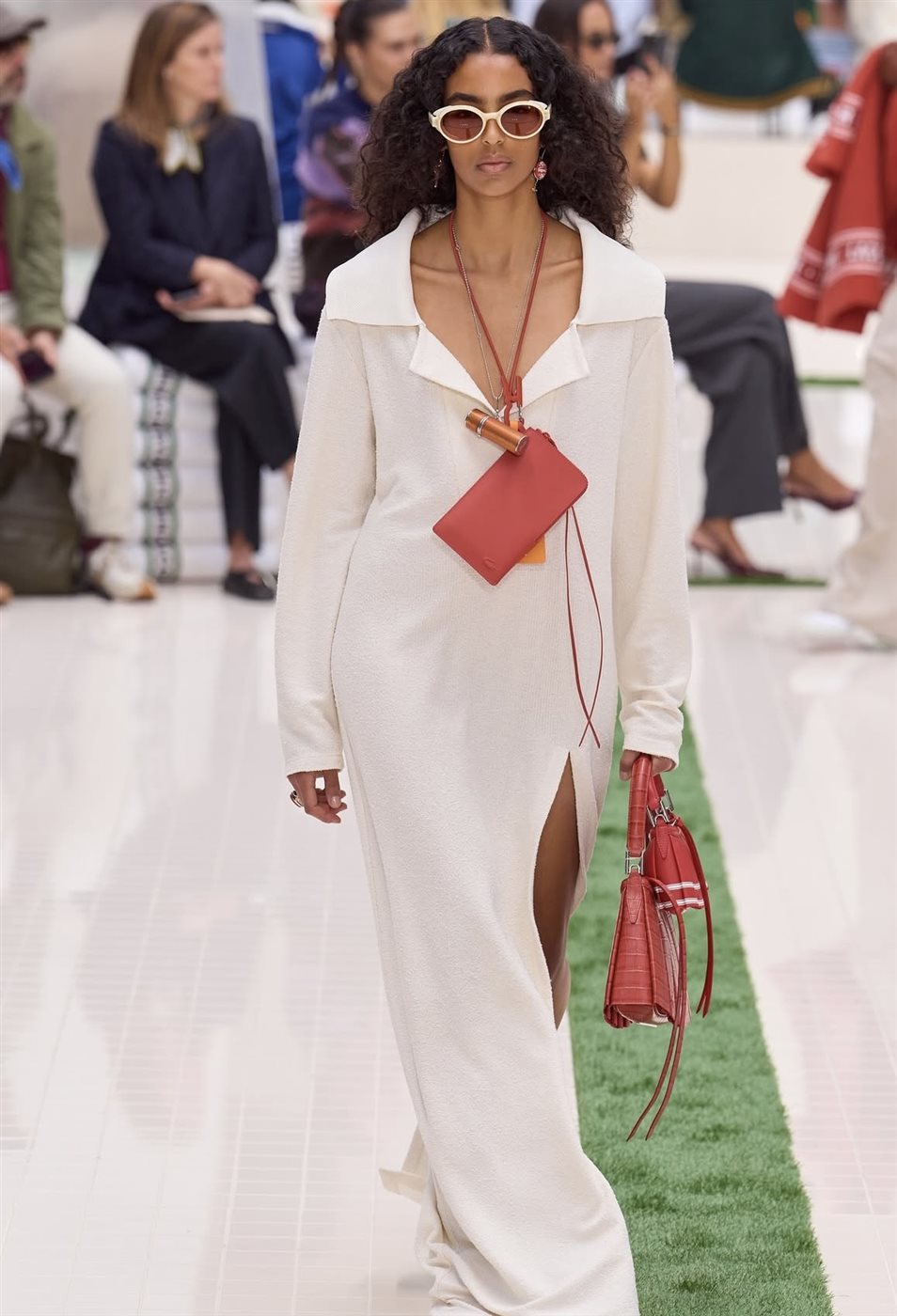 لوحة الألوان كانت نابضة بالحياة، مستوحاة من الملابس الرياضية الكلاسيكية، فغلبت عليها درجات البرتقالي، الأخضر، والأبيض، لتضفي حيوية شبابية وتعبّر عن طاقة الصيف المتجددة. كما أضافت المصممة لمسات فنية عبر تطريزات زهرية رقيقة تجسّد لحظات الفرح والانتصار، في إشارة إلى إرث الدار الذي يجمع بين البساطة والتفرّد.