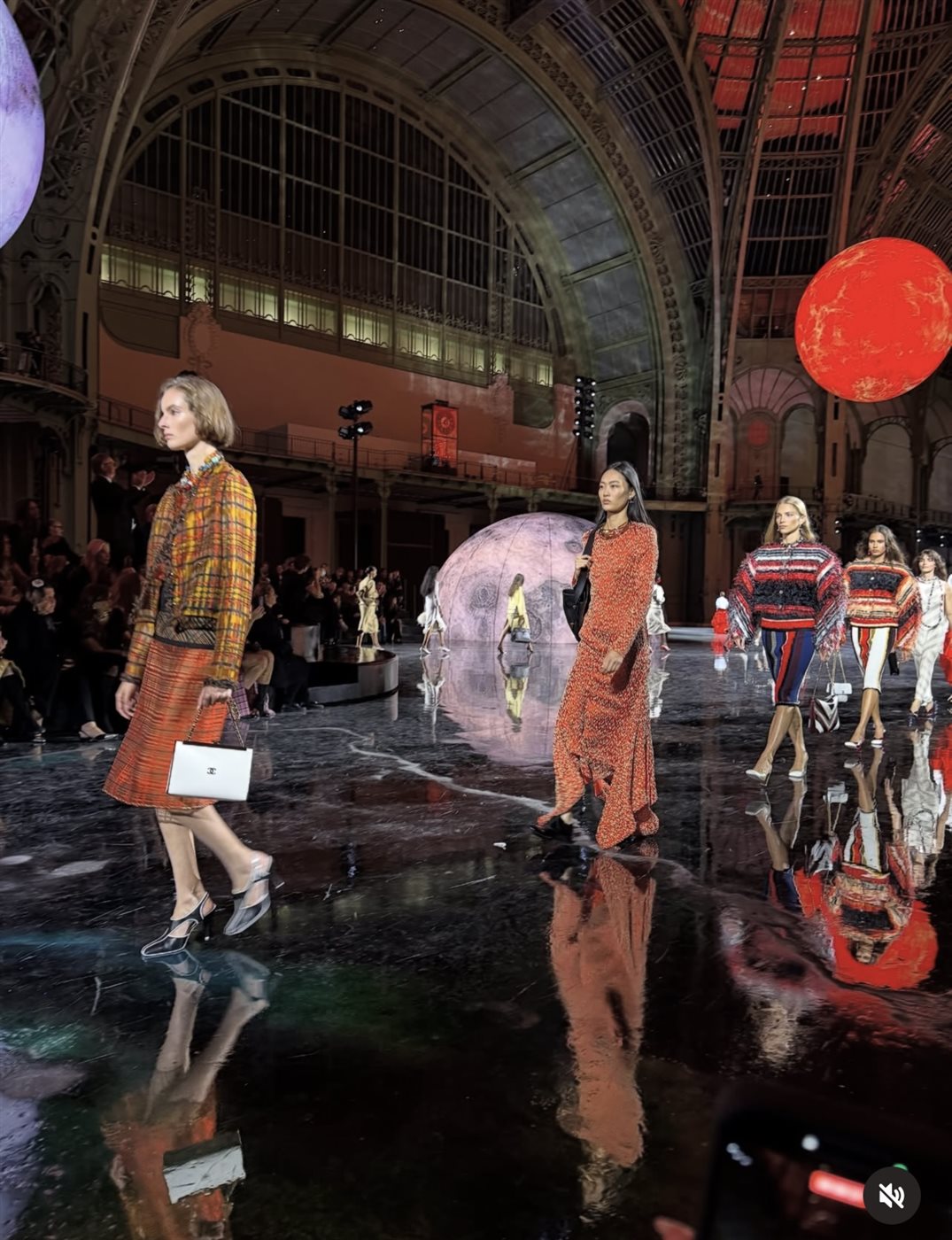 بدا واضحًا أن بلازي اختار أن يقدم رؤية تحترم رموز شانيل حيث التويد، القَصّات الدقيقة، والأكسسوارات الأيقونية مع إعادة قراءتها بروحٍ جديدة: أطوال متغيرة، تجاويف خام في الحواف، وتفاصيل تعكس حرية الحركة والوظيفة والجرأة في آنٍ معًا. جماليات العرض لم تقتصر على الملابس فقط؛ فقد صُمّم المشهد ككسوف سماوي من الأضواء والديكور الذي استحضر عناصر كونية، ما زيّن كل خرجات العارضات بإحساس سينمائي كبير.