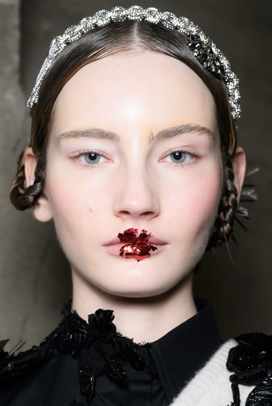بعض المصممين دمجوا بين شفاه قوية وعيون قوية، في مزيج يُبرز التناقض والتباين في الإطلالة الكلية. - تفاصيل معدنية ولمسات لامعة