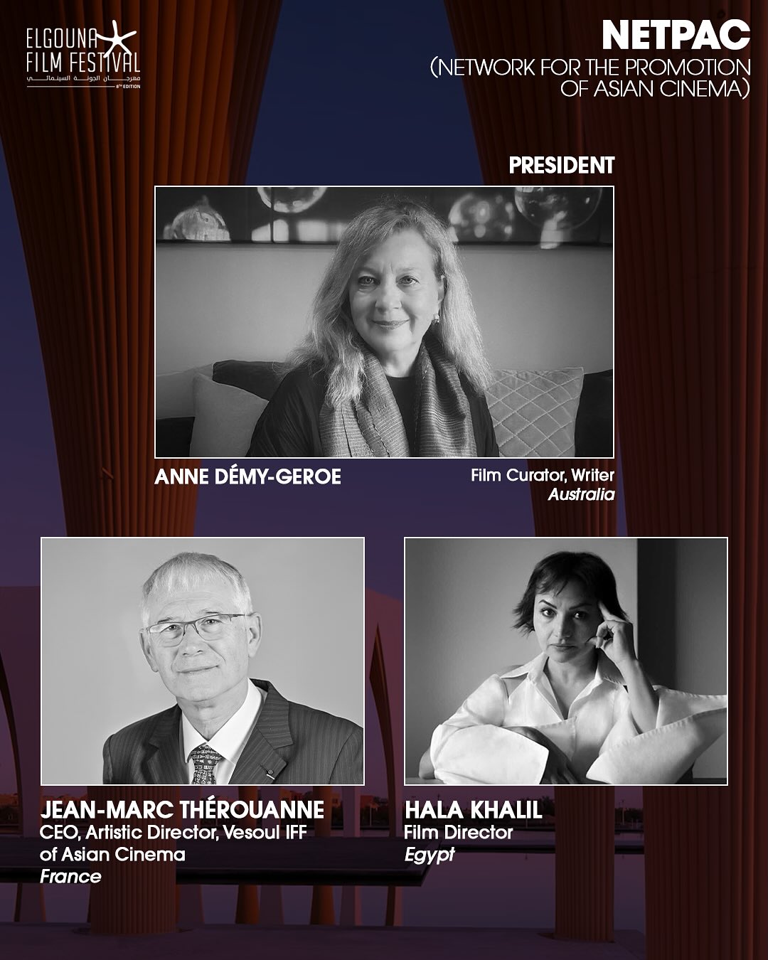أما لجنة تحكيم جائزة نتباك (شبكة ترويج سينما آسيا والمحيط الهادئ)، فتترأسها المنسقة والكاتبة الأسترالية آن ديمي جيرو، وتضم في عضويتها جان مارك ثيروان المدير التنفيذي والفني لمهرجان فيزول لسينما آسيا في فرنسا، والمخرجة المصرية هالة خليل.