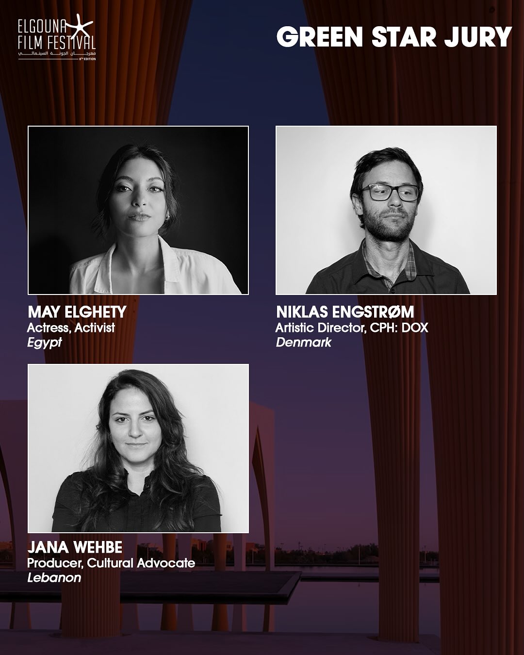 تضم لجنة تحكيم جائزة النجمة الخضراء كلًّا من المنتجة والناشطة الثقافية اللبنانية جانا وهبة، والممثلة والناشطة المصرية مي الغيطي، إلى جانب نيكلاس إنغستروم المدير الفني لمهرجان كوبنهاغن للأفلام الوثائقية في الدنمارك.