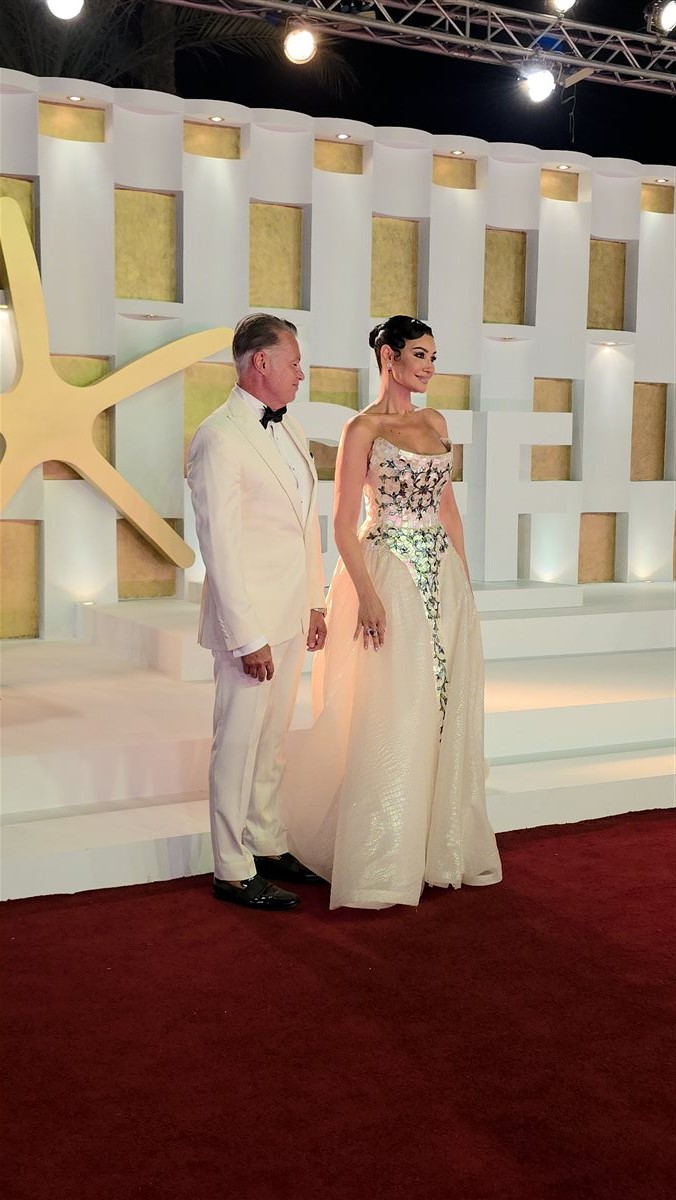 أما خطيبها، فاختار بدلة بيضاء بتصميم كلاسيكي راقٍ، مزج فيها بين الأسلوب العصري واللمسات التقليدية، مع قميص أبيض وربطة عنق أنيقة باللون ذاته. تناغم الإطلالتين منح المشهد لمسة من الانسجام والرقي، وجعل ظهورهما المشترك حديث مواقع التواصل الاجتماعي التي امتلأت بالتهاني والتعليقات التي وصفت الثنائي بـ”الثنائي الأجمل في الوسط الفني”.