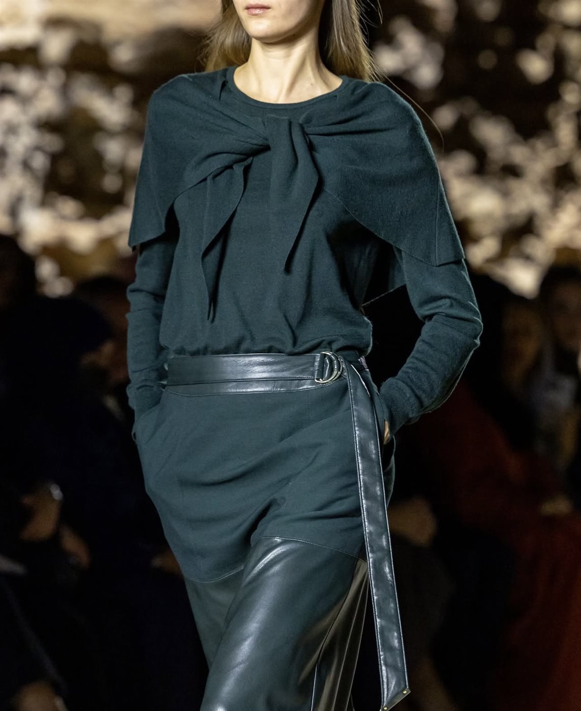 ومن حيث القصّات، قدّمت Leem مزيجاً بين الاحتشام والأناقة الأوروبية؛ فبرزت الكاب الطويلة والياقات العالية إلى جانب الأكمام المنفوخة، ما منح القطع حضوراً قوياً دون مبالغة. كما أدرجت الدار بعض التطريزات اليدوية المستوحاة من التراث العربي بطريقة عصرية حافظت على الأصالة وأدخلت لمسة من الفخر المحلي إلى كل تصميم.