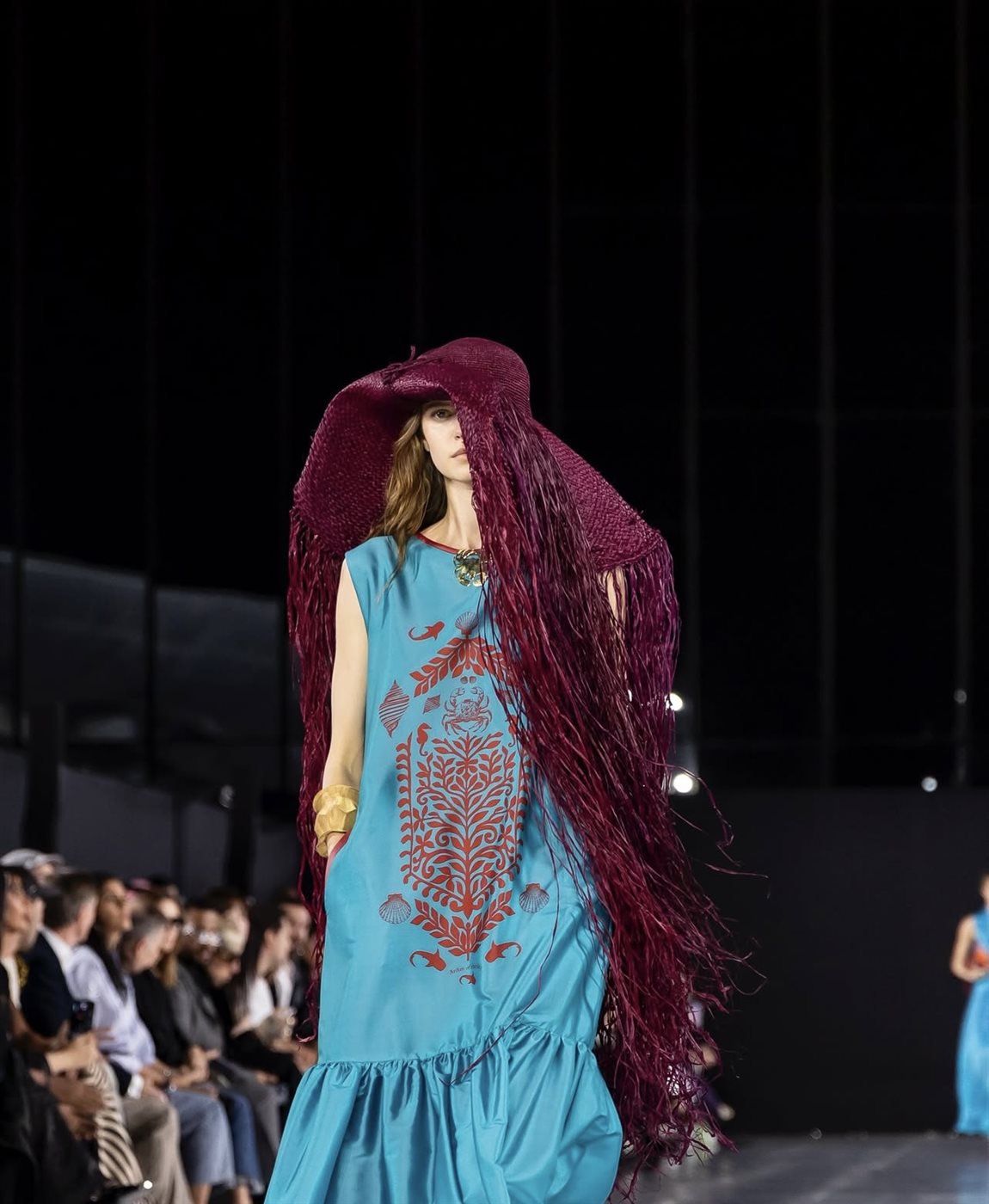 استلهمت Aram Designs مجموعتها من الجمال الأنثوي الكامن في التناقضات؛ فبين الأقمشة الفاخرة كالحرير والشيفون، والتطريز اليدوي المتقن، برزت تصاميم متوازنة بين الرقي والجرأة. كما تميز العرض بلوحة ألوان جريئة ومبهجة شملت الدرجات الازرق ، والأحمر والابيض ، واللمسات المعدنية التي تعكس ضوء المدينة العصرية، في إشارة إلى التحول الديناميكي الذي تشهده الرياض كعاصمة للأزياء.