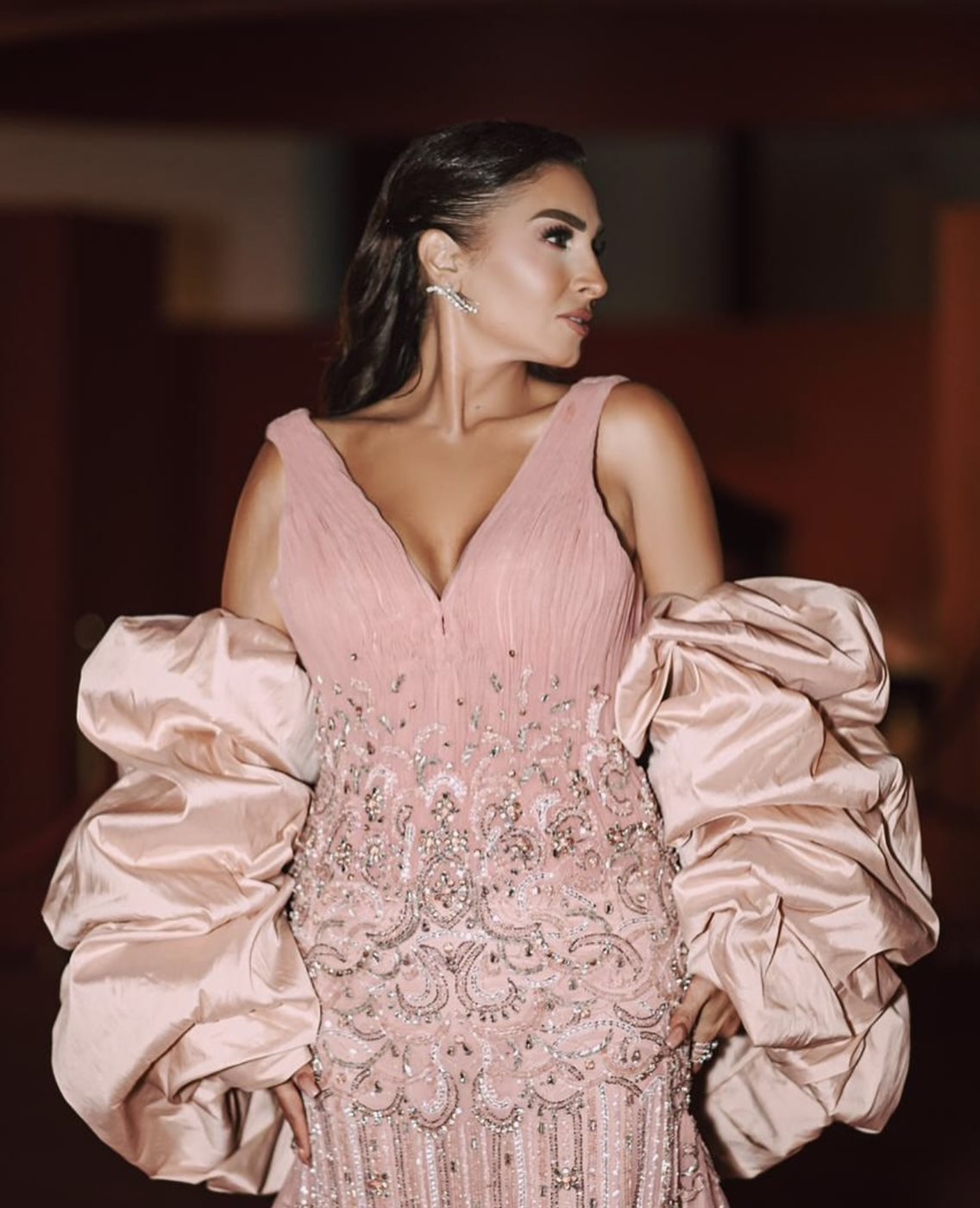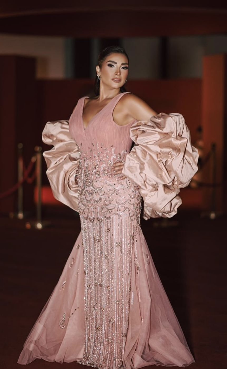 إطلالة ملكية لروجينا بتوقيع ميرنا جوهري تُشعل السجادة الحمراء في الجونة