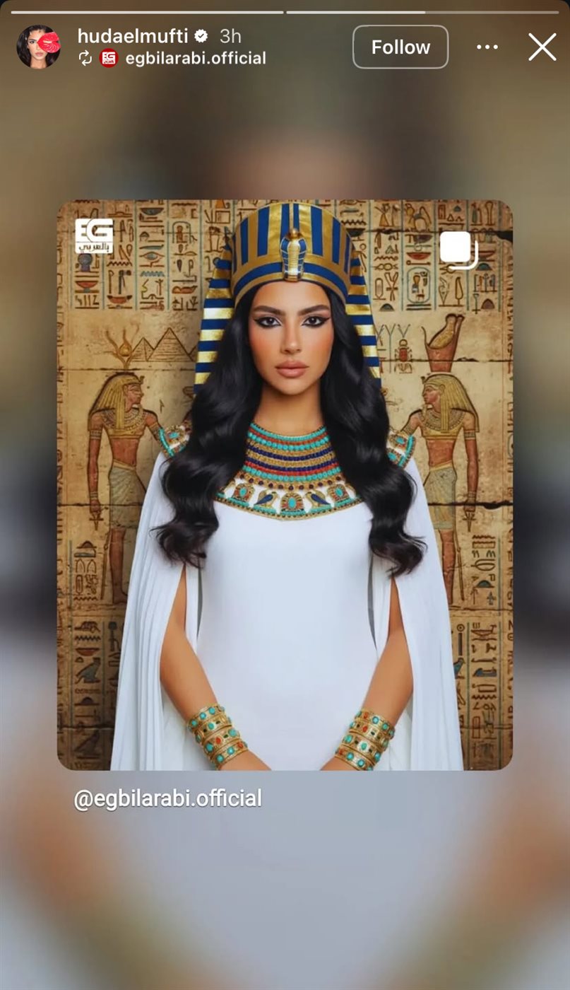 بينما استخدمت هدى المفتي تقنية الذكاء الاصطناعي لتحويل صورها إلى إطلالة فرعونية مميزة.