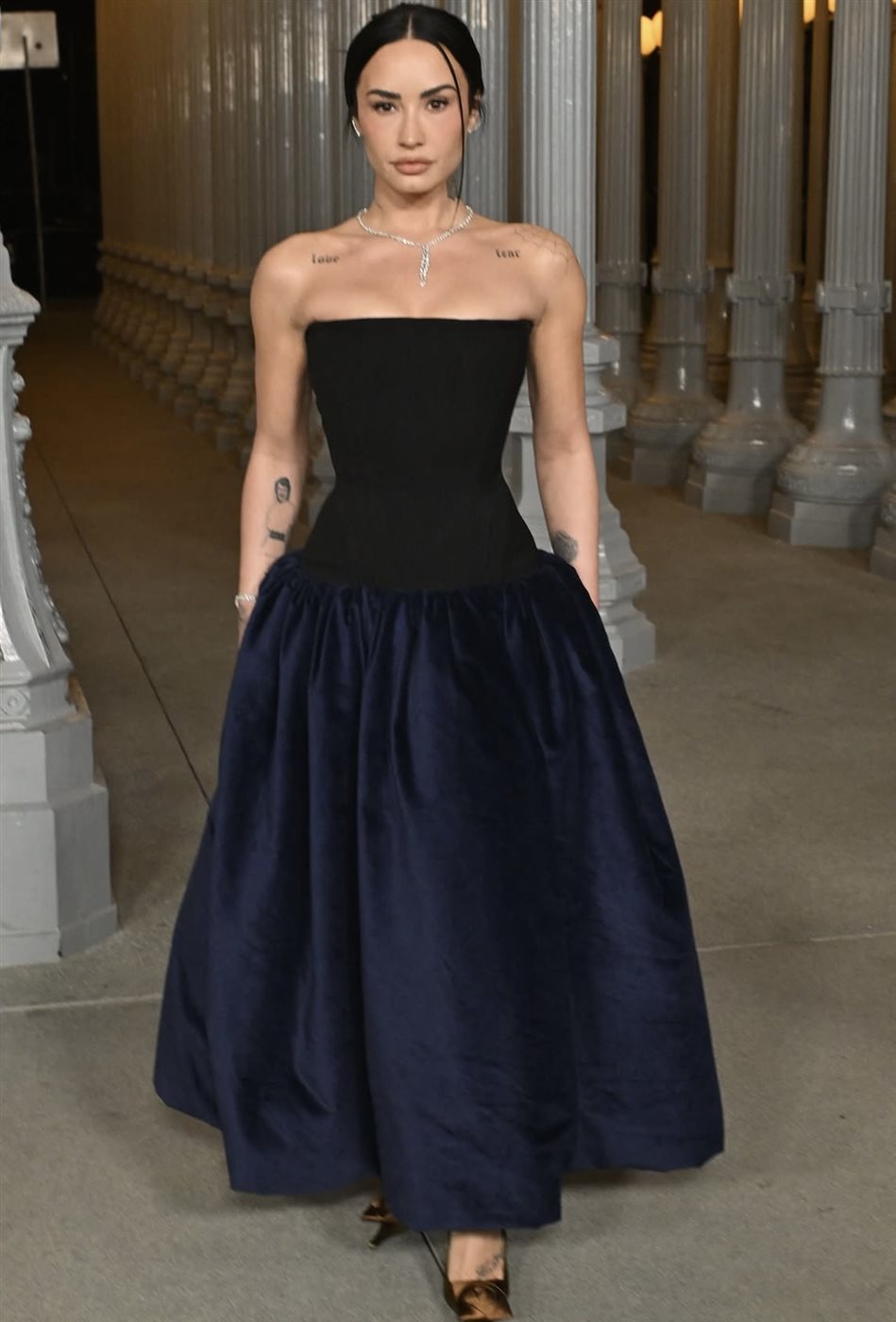 أما النجمة ديمي مور، فقد اختارت إطلالة درامية باللون الأسود تميزت بالجرأة والفخامة، لتثبت حضورها الدائم كأيقونة أناقة خالدة على السجادة الحمراء.