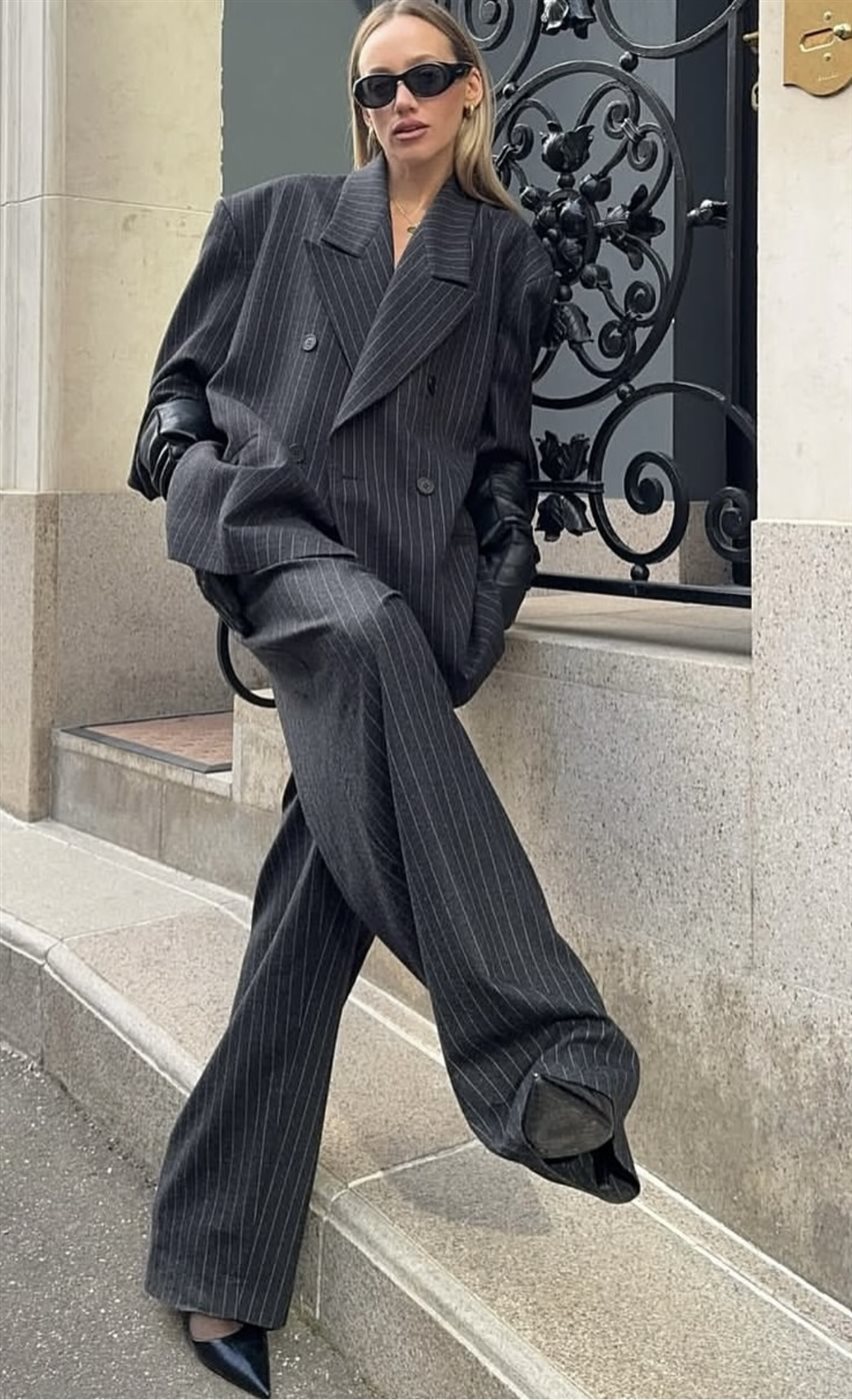 وتتميّز البدلة المخططة بقدرتها الفريدة على الانتقال بسلاسة من أجواء العمل الرسمية إلى المناسبات المسائية دون الحاجة لتغيير الإطلالة. في الصباح، يمكن تنسيقها مع قميص أبيض بسيط وحذاء كلاسيكي لتجسّد صورة المرأة المهنية الأنيقة، وفي المساء يمكن تحويلها بلمسات صغيرة مثل حذاء بكعب عالٍ وأقراط معدنية لافتة إلى إطلالة عصرية جذابة. وقد برز هذا الاتجاه بوضوح في عروض دور الأزياء العالمية مثل Alexander McQueen وVictoria Beckham وMax Mara، حيث ظهرت تصاميم متنوعة تتراوح بين القصّات الضيقة ذات الخصر المحدد والتصاميم الفضفاضة المستوحاة من أسلوب الرجال.