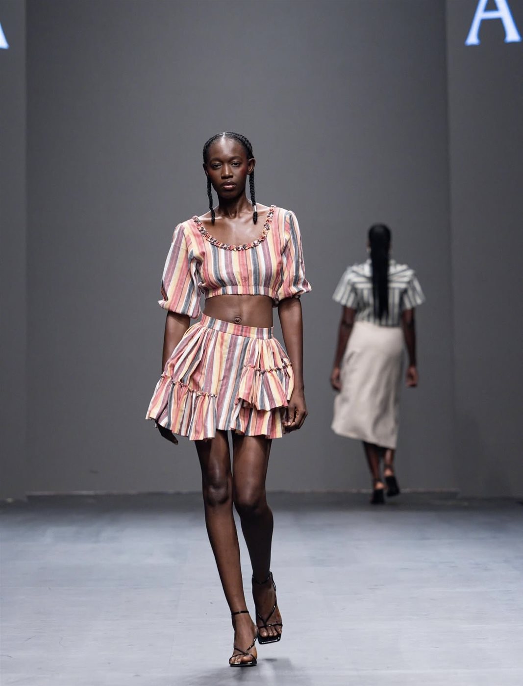 وقد تميّزت المجموعة بثراء التفاصيل وأناقة التكوين، حيث برزت الأنسجة الخفيفة والانسيابية التي تحاكي حركة الجسد الطبيعي، مما أضفى على الإطلالات إحساساً بالحيوية والرقة. وتنوّعت التصاميم بين الفساتين المطبوعة ذات القصّات الواسعة والبدلات العصرية بألوان ناعمة، فيما جاءت النقوش مستوحاة من الطبيعة والرموز الثقافية الإفريقية في معالجة فنية راقية. هذا التوازن بين الجرأة في الطبعات والبساطة في الشكل منح المجموعة شخصية مميّزة تجسد رؤية Maison Alulla حول الجمال المتكامل.