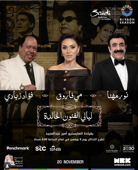 يجتمع ثلاثة من نجوم الطرب والغناء في الوطن العربي، في ليلة جديدة من ليالي الفنون الخالدة، التي أطلقها موسم الرياض 2025، ليكون الجمهور على موعدة مع أمسية تعيدهم للزمن الجميل.