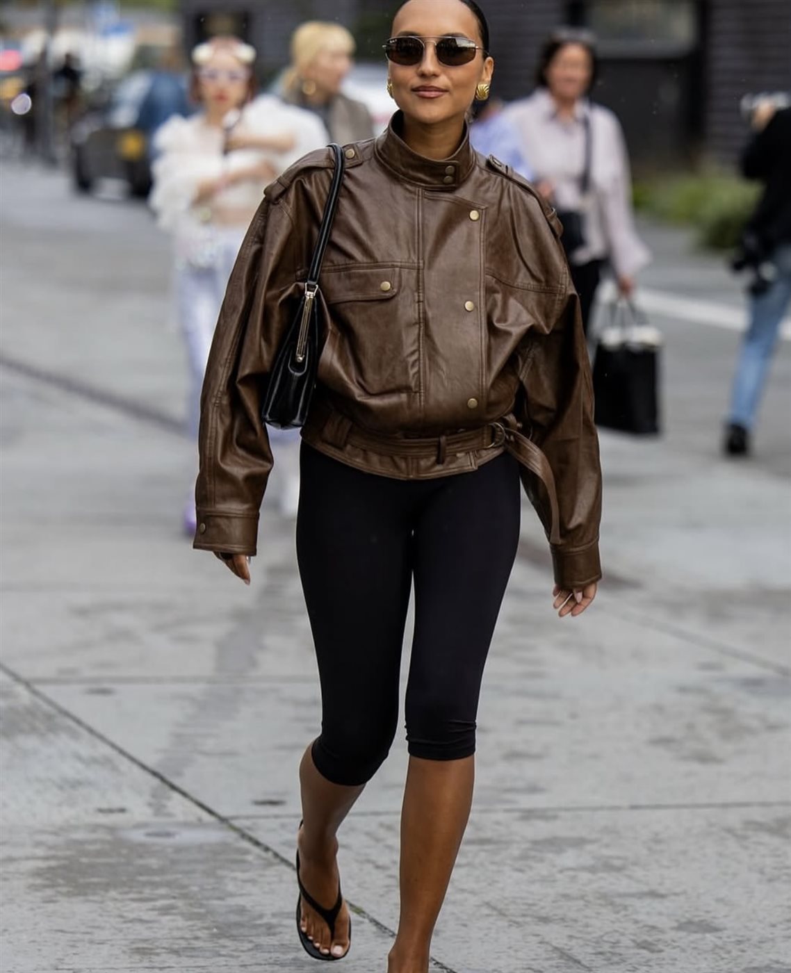 من المنصات إلى الشوارع: الجواكيت الجلدية البنية تتربع على عرش الموضة من جديد