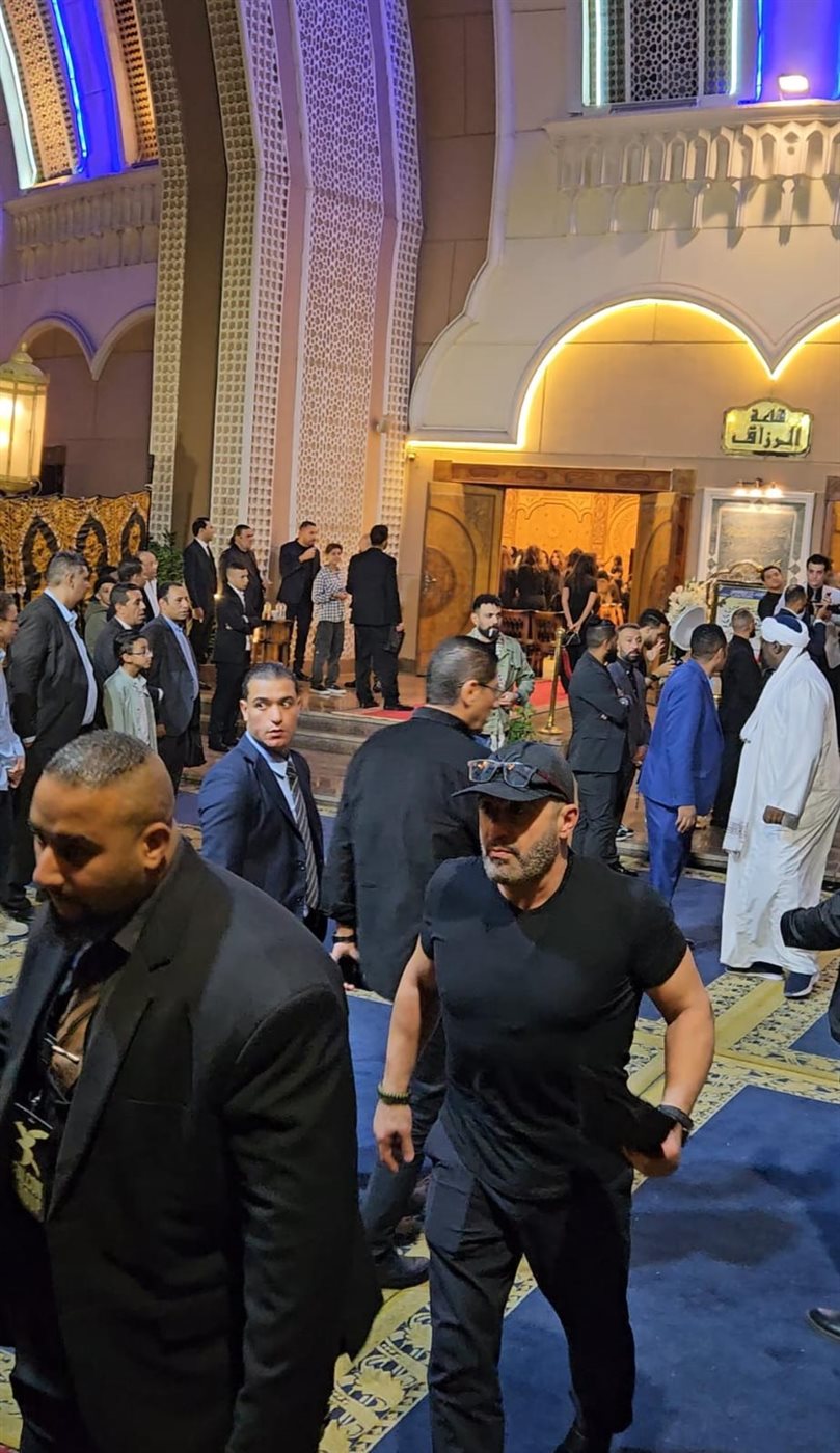 علاء مبارك و درة و عمرو سعد في عزاء والد الفنان محمد رمضان بمسجد الشرطة