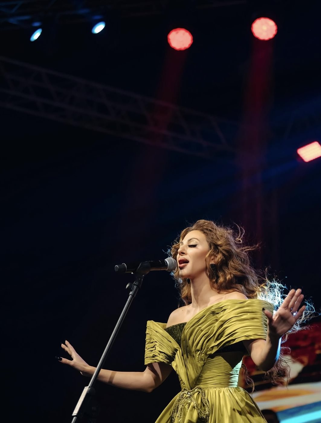 في واحدة من أجمل إطلالاتها لهذا العام، خطفت الفنانة اللبنانية ميريام فارس الأنظار خلال حفلها الضخم الذي أحيته في شرم الشيخ – مصر، حيث جمعت بين الفخامة الملكية والحضور المسرحي الآسر في إطلالة عكست ذوقها الرفيع وحسّها الفني المميز. ظهرت ميريام مرتدية فستاناً بلون الزيتون اللامع، صُمم من قماش الساتان الفاخر الذي يعكس الضوء بطريقة تضفي لمسة سحرية على حركتها فوق المسرح.