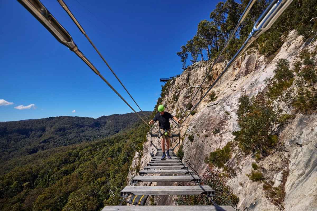 تبدأ التجربة بتسلق أريتي فيا فيراتا، حيث يتخطى الزوار الحافة في رحلة صعود خلابة عبر جسر بطول 80 مترًا، مرورًا بحبال مشدودة ومعابر خشبية معلقة عاليًا فوق الوادي. ومن هناك، ينطلقون إلى "توتال إكسبوجر"، أطول وأعلى مسار انزلاقي في الحديقة، حيث ينزلقون على ارتفاع 200 متر فوق منتزه لامينغتون الوطني.
