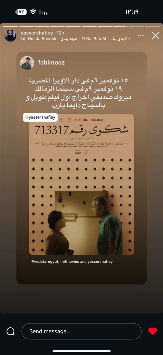 وروجت شهد أحمد الشهيرة باسم “شهد معكم لحياة أفضل”، للفيلم الأول التي تشارك به مع النجم محمود حميدة وهو فيلم “شكوى رقم 713317” والمشارك في مسابقة آفاق السينما العربية، وذلك عبر حسابها الرسمي على موقع التواصل الاجتماعي “الفيسبوك”.