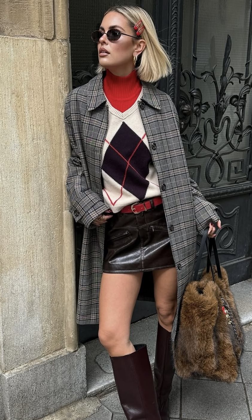ضعي كارديغان أرجايل فوق توب ضيق مع معطف طويل، لإطلالة دافئة ومفعمة بالأناقة.