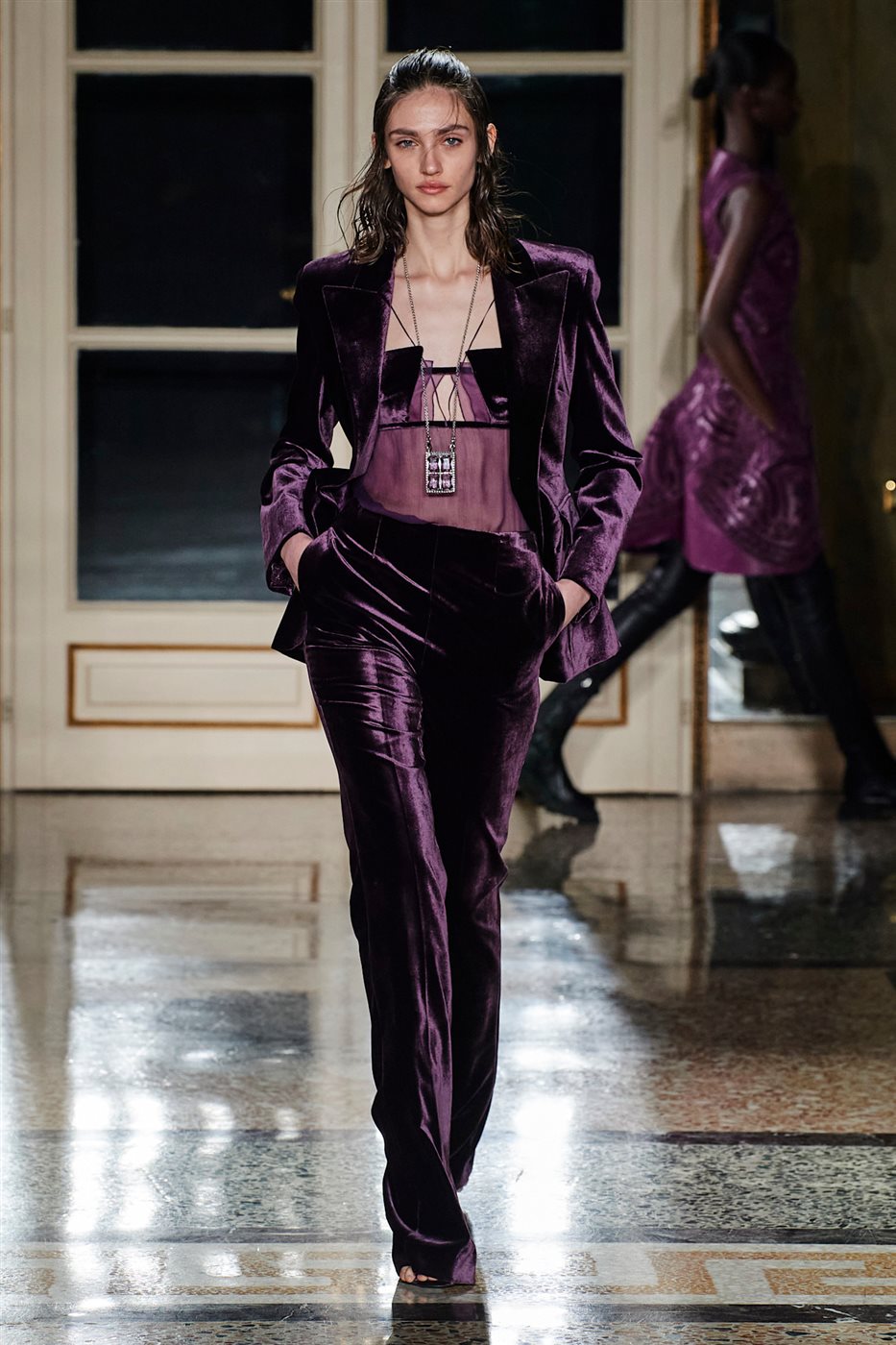 وتتميز بدلات المخمل بقدرتها على إبراز قوام المرأة ومنحها جاذبية هادئة، سواء جاءت بقصة رسمية ضيقة أو بقصات واسعة ذات طابع رجالي أنيق. كما يسمح المخمل بتدرجات لونية آسرة، أبرزها الأسود الملكي، النبيذي، الأخضر الزمردي، الأزرق الداكن، وحتى الوردي الفاتح الذي دخل مؤخرًا إلى خطوط الموضة الشتوية. وتعود هذه الشعبية إلى كون المخمل خامة غنية تعكس الضوء وتُظهر تفاصيل التصميم بطريقة فاخرة، ما يجعلها مناسبة للمناسبات الليلية والسجادة الحمراء.