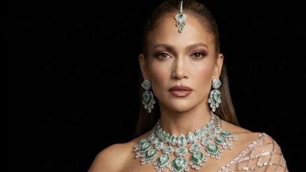 وقد اختارت جينيفر لوبيز ساريًا ورديًا مطرّزًا من توقيع المصمم الهندي الشهير مانيش مالهوترا، أحد أهم الأسماء في عالم الأزياء الهندية وصاحب بصمات مميزة في إطلالات نجمات بوليوود. وقد جاء الساري بتصميم استثنائي يجمع بين النقوش الهندية التقليدية والتطريزات الدقيقة الراقية، ما منح الإطلالة طابعًا ملكيًا متناغمًا مع أجواء الاحتفال الأسطوري في أودايبور، المدينة التي لطالما ارتبط اسمها بالأعراس الفاخرة.