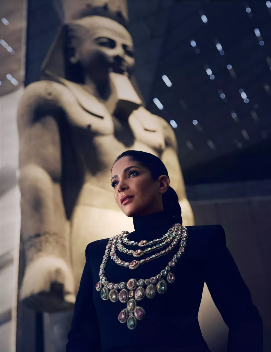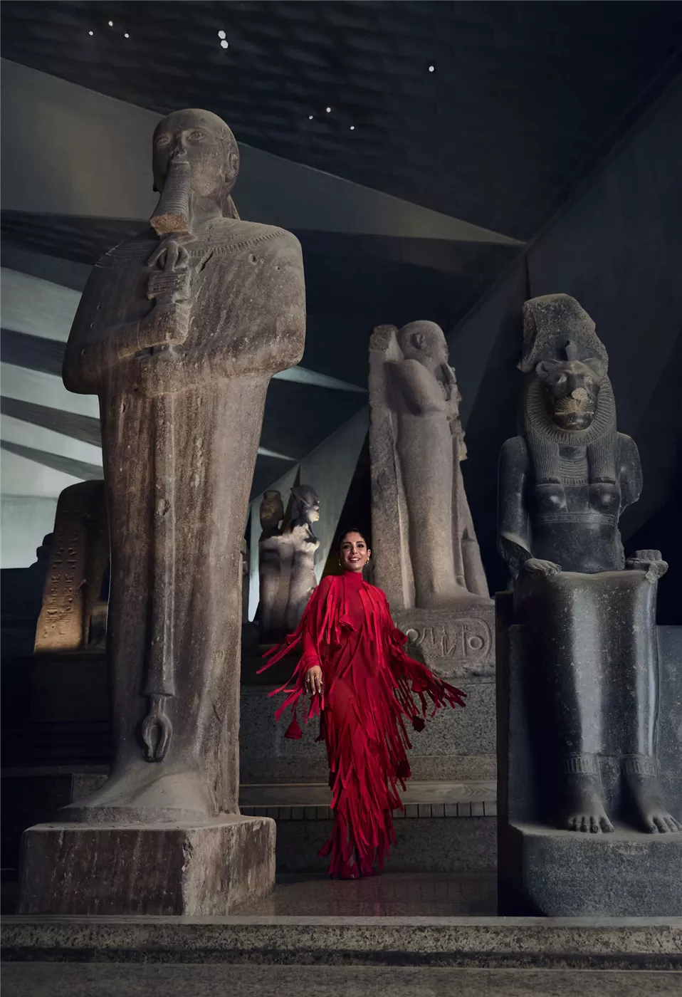 وجاء اللقاء بالتزامن مع جلسة تصوير خضعت لها منى زكي مع مجلة فوغ بالعربية، والتي جاءت داخل المتحف المصري الكبير التي شاركت فيه وقت الافتتاح.