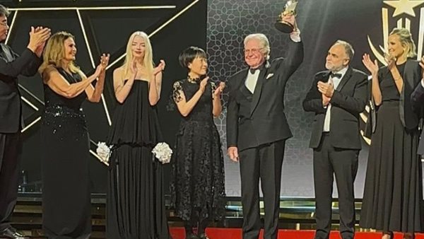 تكريم حسين فهمي ويسرا تسلمه الجائزة في حفل افتتاح مهرجان مراكش للفيلم
