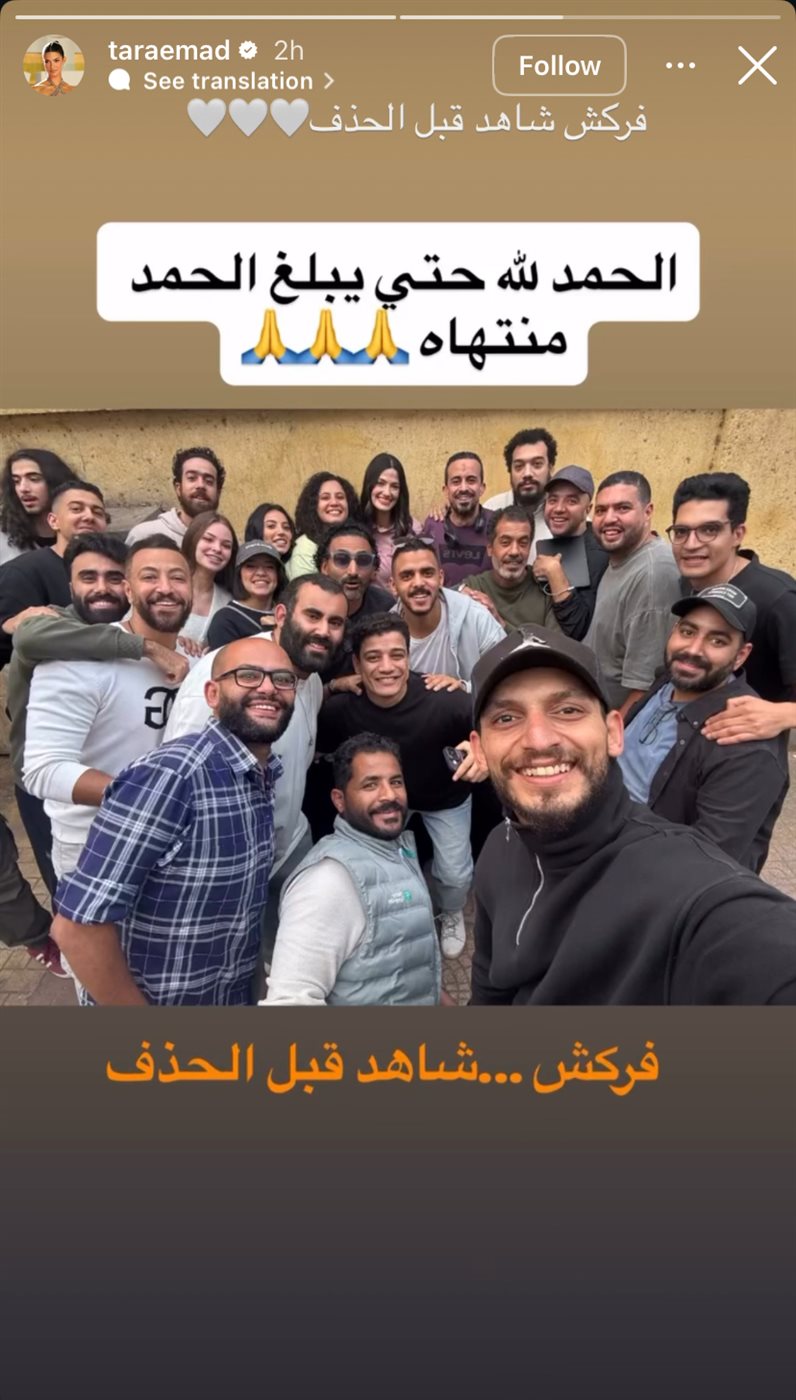 وكشفت تارا الخبر عبر حسابها على “إنستجرام”، حيث نشرت صورة من كواليس اليوم الأخير للتصوير، وعلقت:"فركش شاهد قبل الحذف الحمد لله حتى يبلغ الحمد منتهاه".