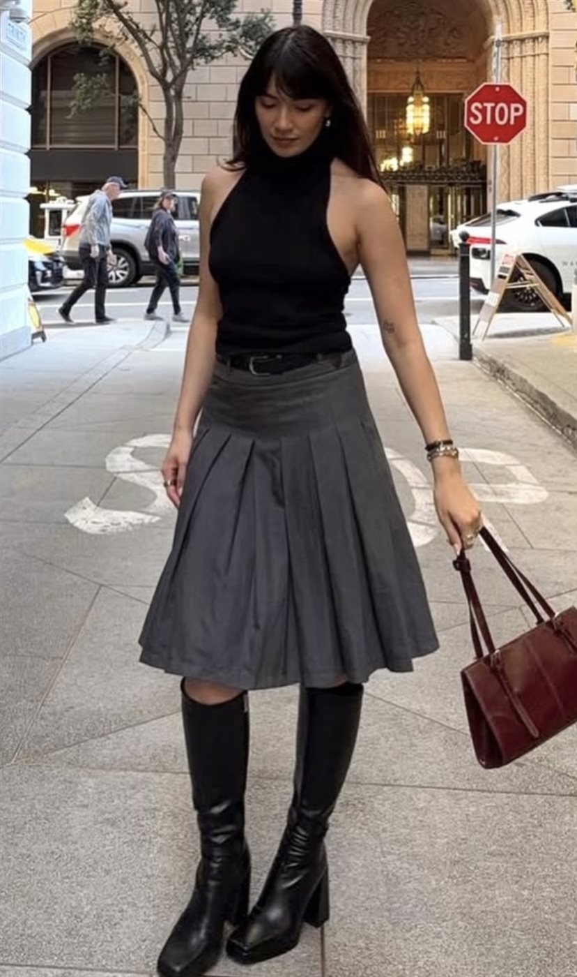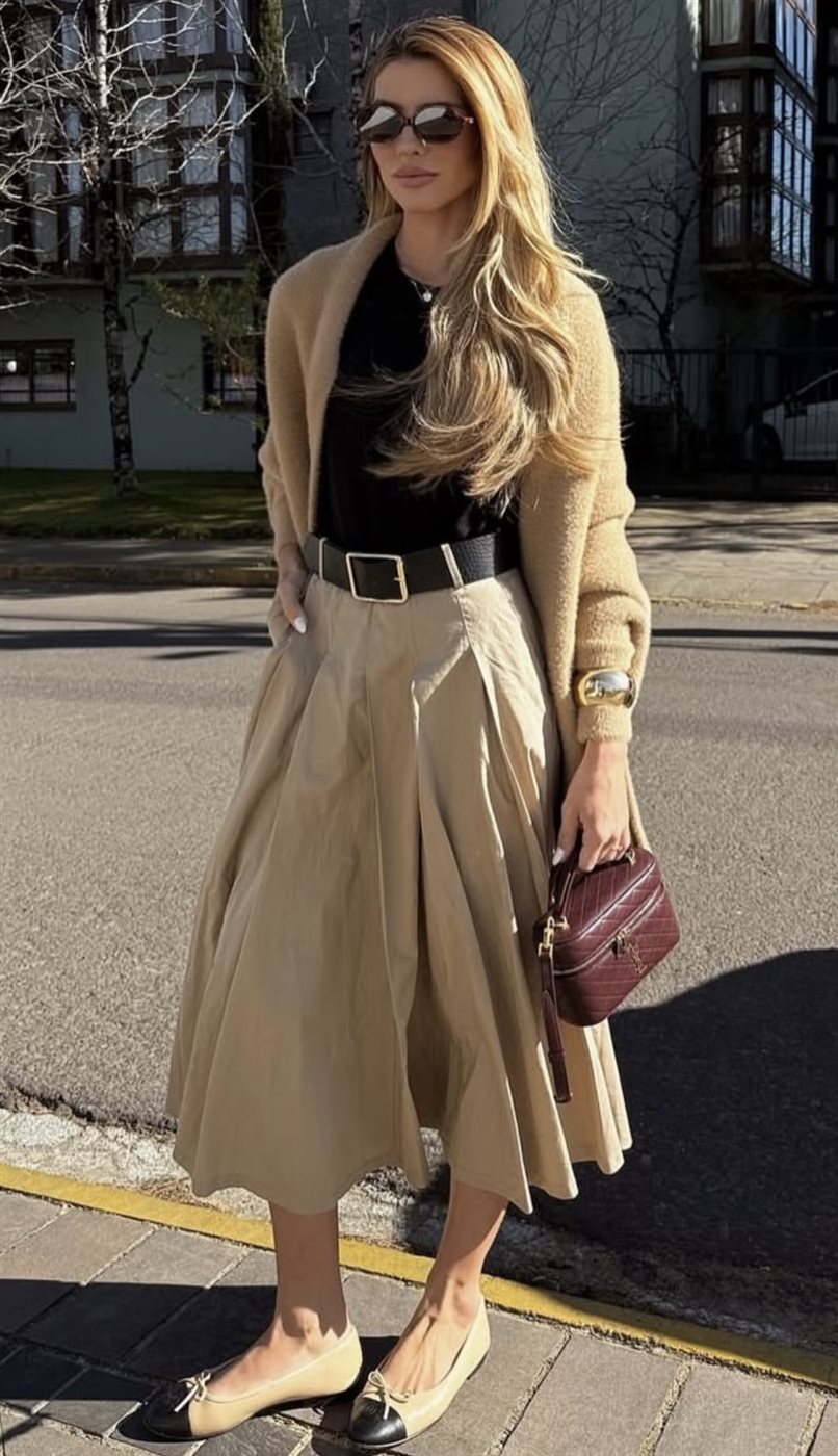 برزت التنانير الميدي البليسيه كخيار مثالي للمرأة التي تبحث عن إطلالة تجمع بين الوقار والعصرية. يمكن تنسيقها مع كنزات محبوكة، تيشيرتات بسيطة، أو حتى بلايز ساتان لمظهر مسائي أنيق. أما التنانير الطويلة فتعطي حضورًا أكثر رقيًا، خاصة عند تنسيقها مع معاطف طويلة وأحذية بوت عالية، ما يجعلها خيارًا مضمونًا للخريف والشتاء.
