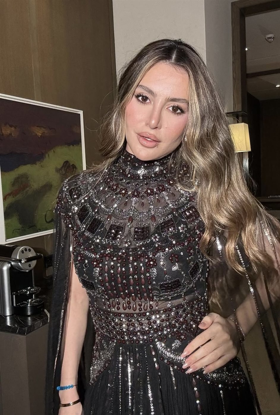 كما اختارت مرام مكياجًا بتوقيع Salma Sherif، جاء ناعمًا لكن بلمسة دافئة تبرز تفاصيل الوجه دون مبالغة. اعتمدت على تدرجات برونزية للعيون، مع لمعة خفيفة تزيد من عمق النظرة، فيما جاءت الشفاه بلون وردي محايد يكمّل جمال الإطلالة السوداء الراقية. أما الشعر فجاء منسدلًا بموجات عريضة بلون أشقر عسلي، أضاف لوجهها نورًا وأنوثة، وخلق توازنًا مثاليًا مع غموض الفستان.