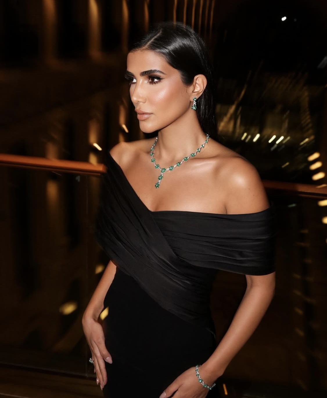 الإكسسوارات لعبت دورًا مهمًا في اكتمال الإطلالة؛ فقد اختارت ريم مجوهرات لافتة من Mouawad، تضمنت قلادة مرصعة بالأحجار وقطعًا داعمة من الخواتم والأساور، شكّلت تكاملاً بصريًا مثاليًا مع الفستان الأسود دون أن تطغى على هدوء التصميم. التوازن بين لمعان المجوهرات وعمق اللون الأسود ساهم في تعزيز حضورها على السجادة الحمراء وإضافة بريق خاص للإطلالة.