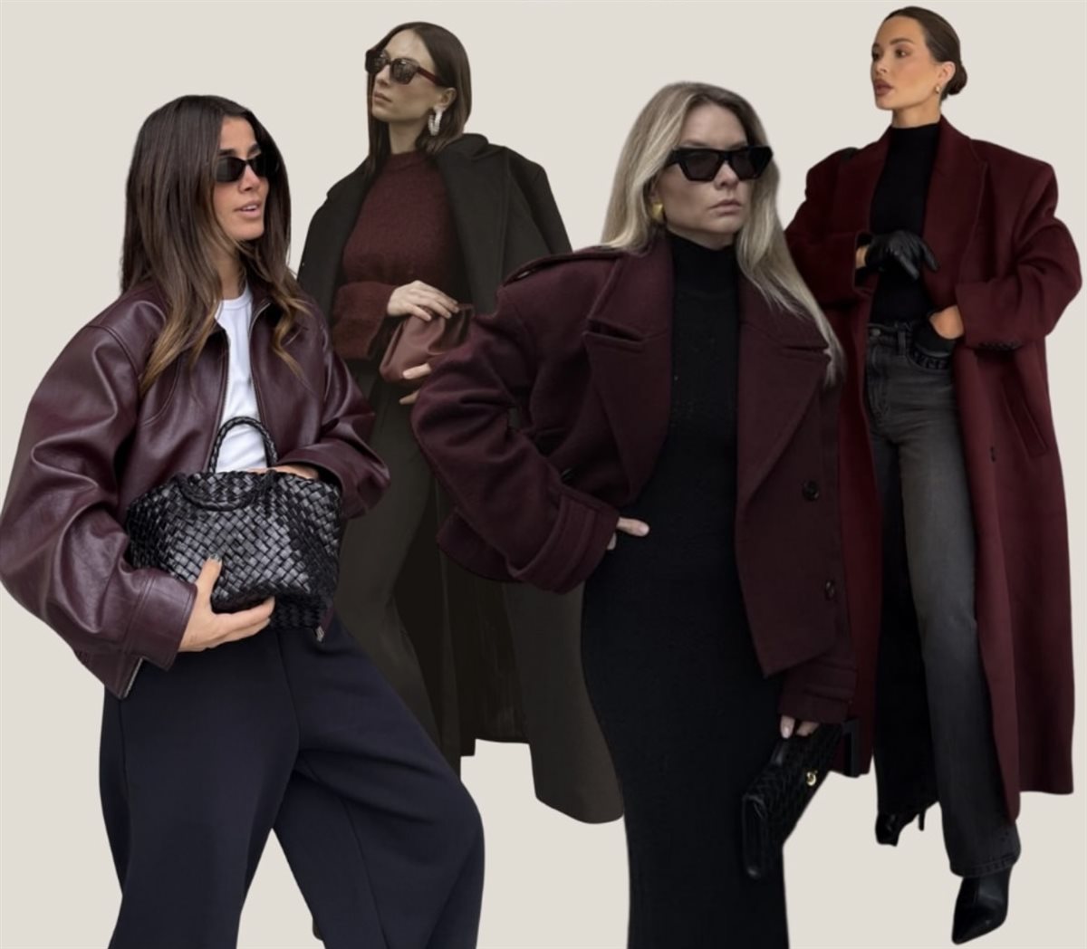 يتجلى هذا المزيج من خلال معاطف برغندي فاخرة فوق قطع سوداء بسيطة، ما يمنح الإطلالة قوة وأناقة في الوقت نفسه. البرغندي يزيد من فخامة الأسود، ليصبح مناسباً للقاءات الرسمية والسهرات الشتوية.