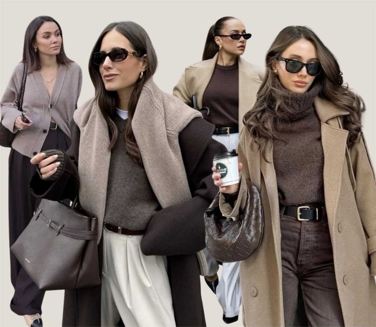 وينعكس جمال هذا المزيج من خلال كنزات ومعاطف بدرجات التوب الناعمة، منسّقة مع قطع بنية غامقة. النتيجة: إطلالة دافئة راقية تجمع بين الهدوء والثراء البصري.