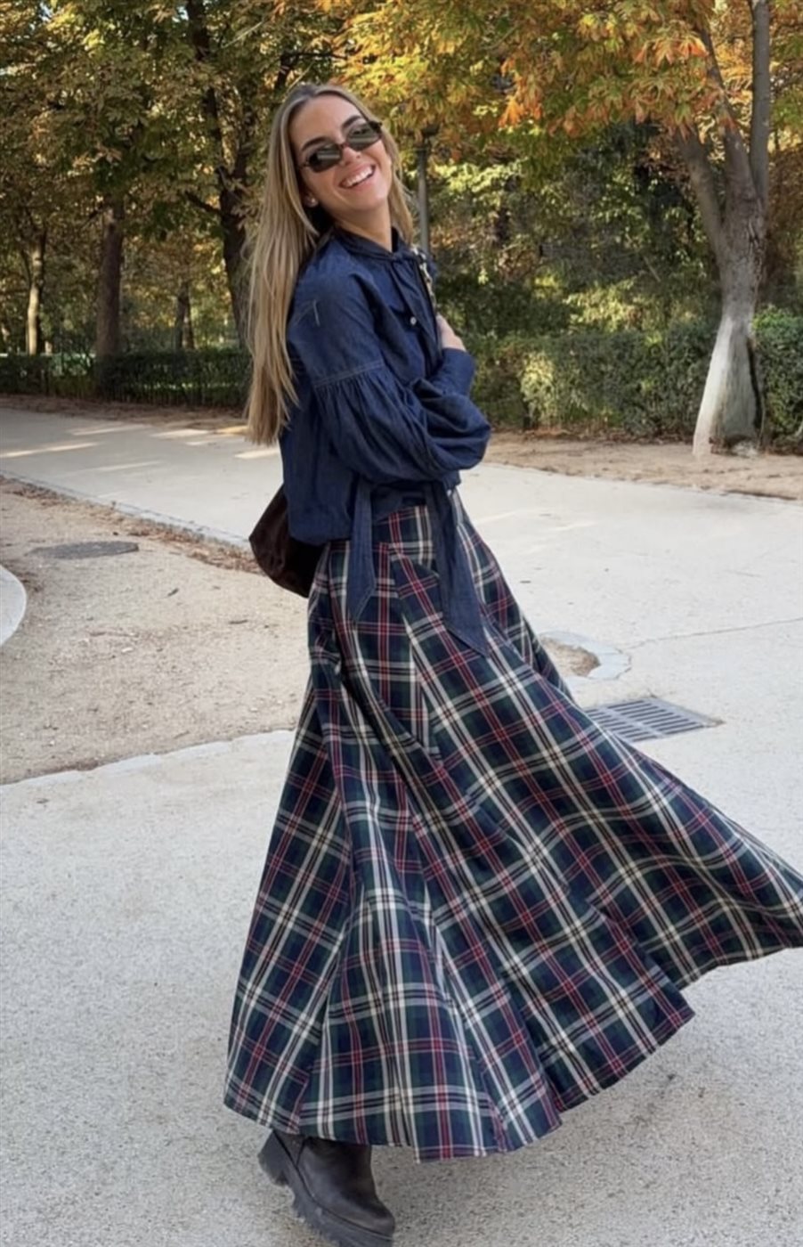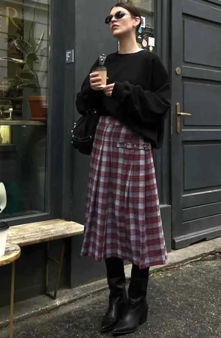 - اختيار تنورة قصيرة Plaid مع كنزة صوفية Oversized وحذاء رياضي لطابع شبابي سهل ومريح.