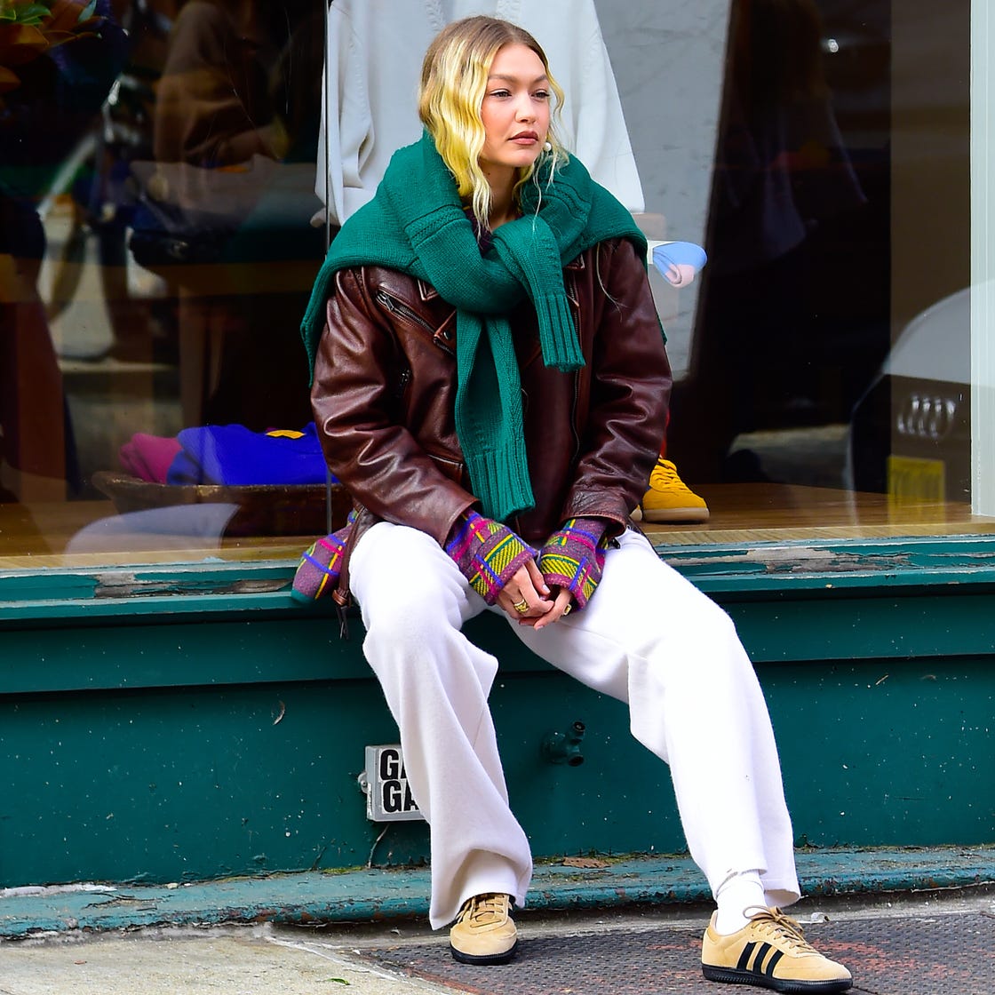 - جيجي حديد اعتمدتها في العديد من الإطلالات الكاجوال، منسّقة مع بناطيل كارغو وجاكيتات قصيرة.
