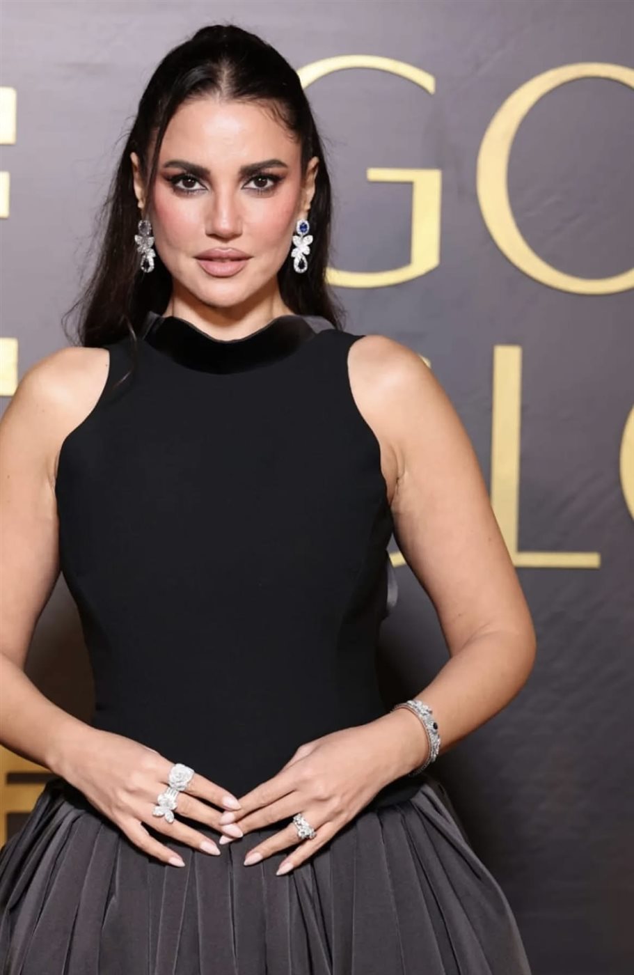 أما المكياج فجاء بلمسات وردية دافئة، مع تحديد بارز للعينين ورموش كثيفة منحتها نظرة قوية وجذابة. واعتمدت تسريحة شعر نصف مرفوعة تنسدل منها الخصلات على الظهر، مما منحها إطلالة أنثوية ناعمة تُبرز ملامحها بوضوح. ومن الواضح أن الستايلست خليل زين كان وراء هذا التناغم المميز الذي جمع بين قوة المظهر ورقته بطريقة متناغمة.