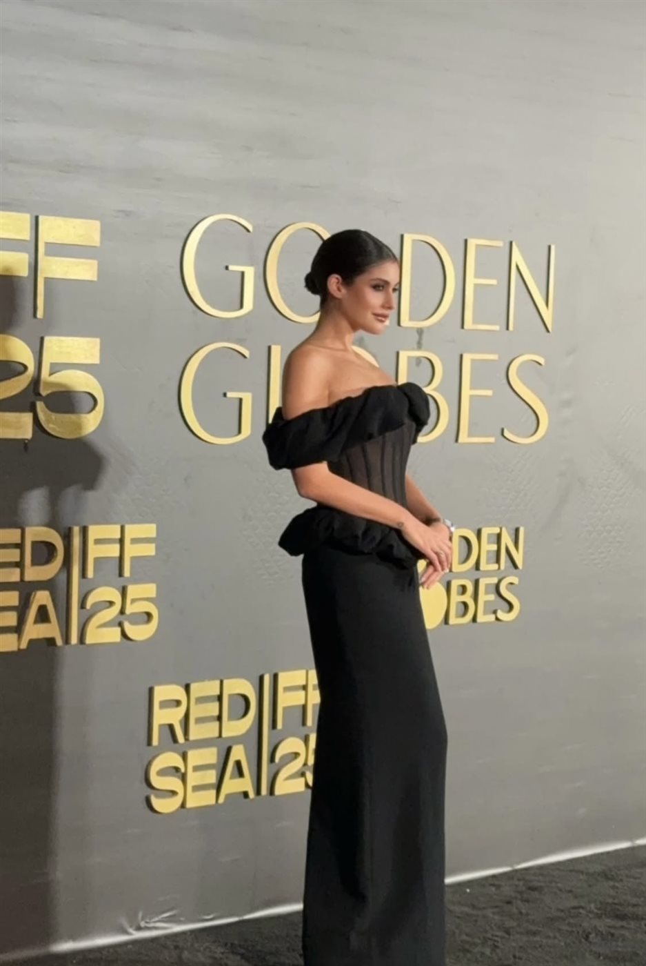 أما الصور التي التقطتها على السجادة الحمراء، فتعكس انسجامًا تامًا بين الإطلالة والمشهد العام. الإضاءة الذهبية وشعار Golden Globes في الخلفية منحا الفستان الأسود فرصة للتألق، بينما بدت نور بثقة وأناقة تُشبه إطلالات السينما الذهبية.