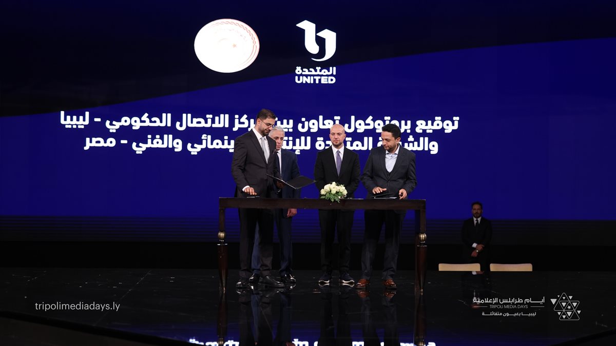 ووقع بروتوكول التعاون، كل من أحمد فايد وطارق مخلوف من الشركة المتحدة بحضور رئيس وزراء ليبيا عبدالحميد الدبيبة، ووزير الدولة للاتصال والشؤون السياسية وليد اللافي، وعدد من الوزراء والشخصيات العربية وسط حضور جماهيري خلال الملتقى الإعلامي.