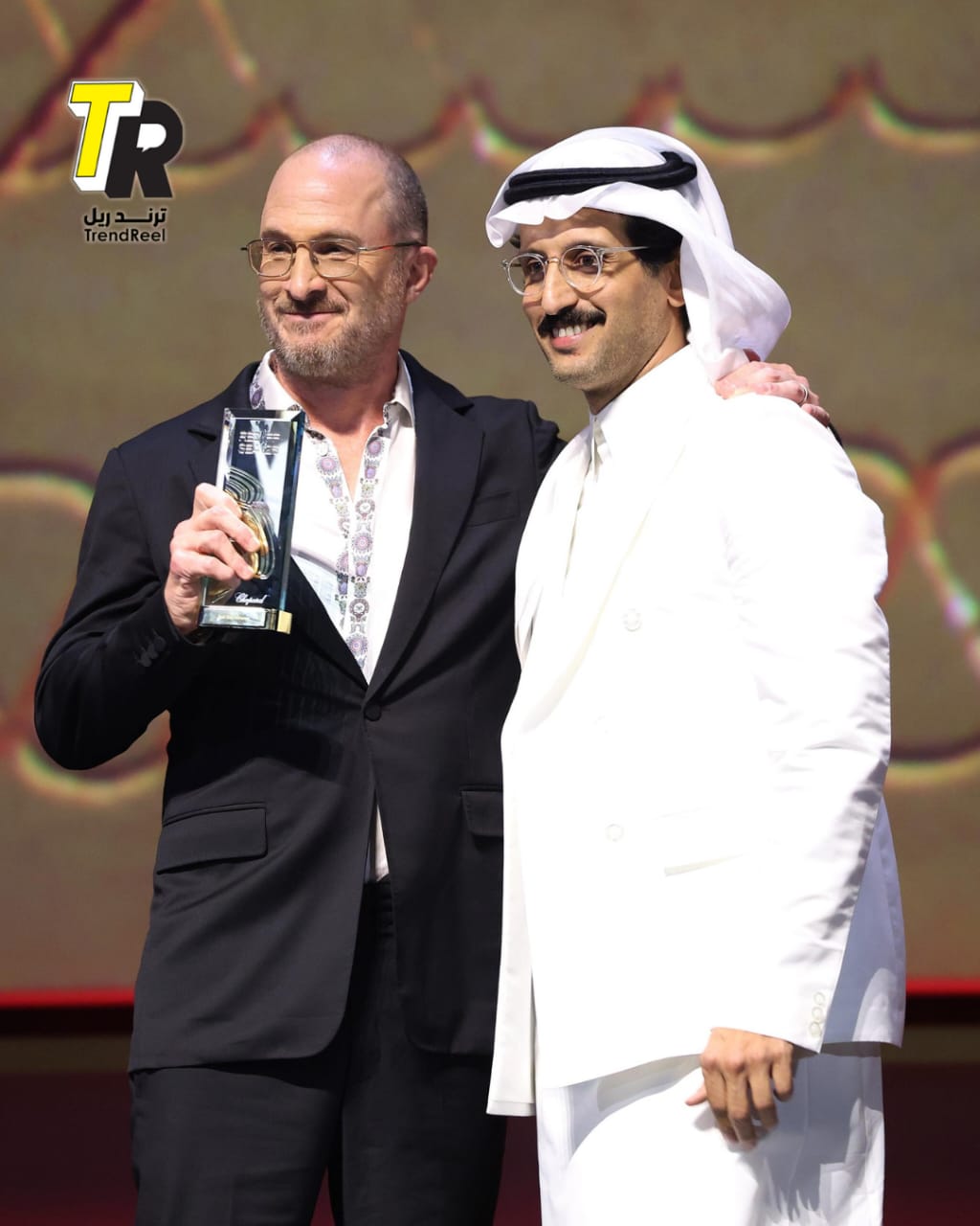 وقام المخرج السعودي علي الكلثمي، بتسليم التكريم إلى المخرج العالمي دارين أرنوفسكي، وحرص المخرج العالمي عل توجيه الشكر إلى إدارة مهرجان البحر الأحمر السينمائي الدولي.