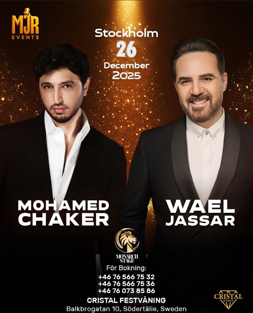 يستعد النجمان وائل جسار ومحمد فضل شاكر لإحياء حفل غنائي استثنائي في السويد يوم 26 ديسمبر الجاري في سهرة يتوقع أن تجمع بين الرومانسية والطرب الأصيل وتستقطب الجمهور العربي هناك.