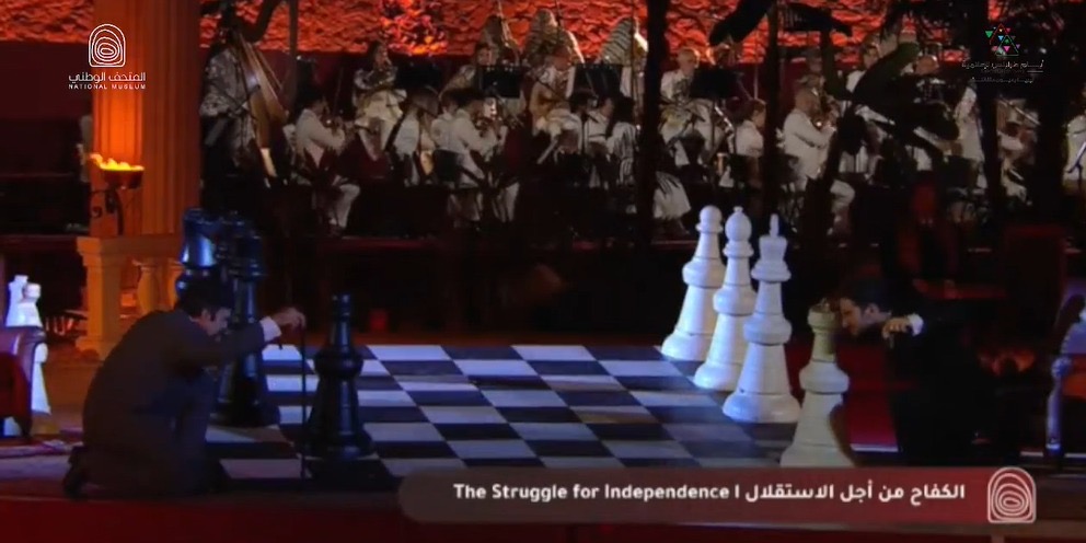 وعقب كلمة رئيس الوزراء الليبي، تم سرد قصص تاريخ ليبيا بدائة من عصر ما قبل التاريخ ومرورًا بالقبائل الليبية الأمازيغية والعصور الكلاسيكية والعهد الإسلامي والقرمانلي وصولا إلى عصر الانتفاضة الشعبية بقيادة عمر المختار رمز ليبيا الخالد الذي قاتل من أجل ليبيا، إذ تم تقديم عروض موسيقية تقودها الأوركسترا وعروض راقصة تعبر عن كل حقبة زمنية من تاريخ ليبيا العريق.