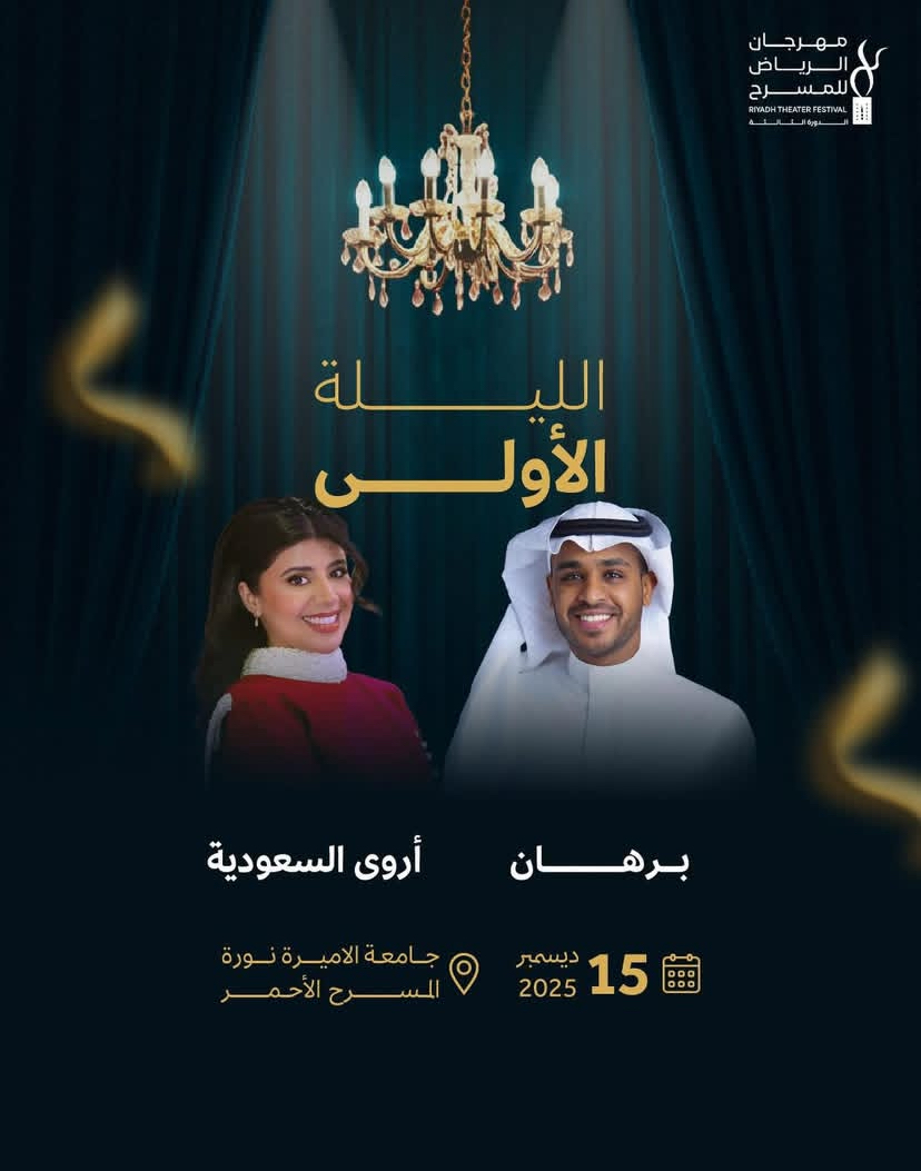 وكان حساب بنش مارك قد أعلن عن أولى هذه الحفلات والتي تقام اليوم وتحييها الفنانة أروى السعودية و الفنان برهان حيث نشر الحساب بوستر الحفل وعلق:"كونوا على موعد مع أصوات سعودية مذهلة الفنانة أروى السعودية والفنان برهان ضمن حفلات مهرجان الرياض للمسرح 15 ديسمبر جامعة الأميرة نورة المسرح الأحمر".