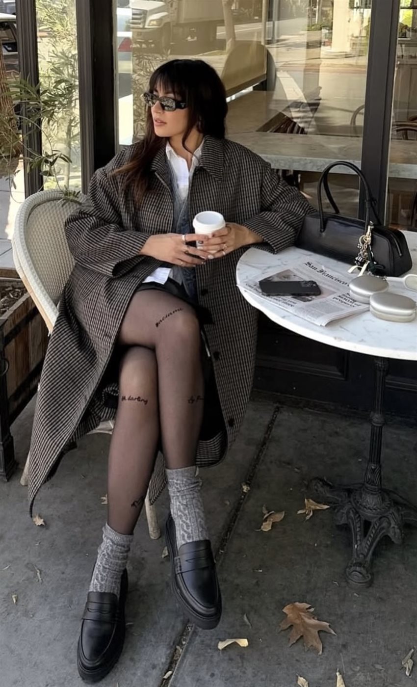 - إطلالة الـPreppy العصرية: تنسيق اللوفرز مع جوارب عالية نسبيًا، مع تنورة قصيرة أو ميدي وبليزر أو كارديغان، يمنحك مظهرًا مستوحى من الأزياء الجامعية الراقية.