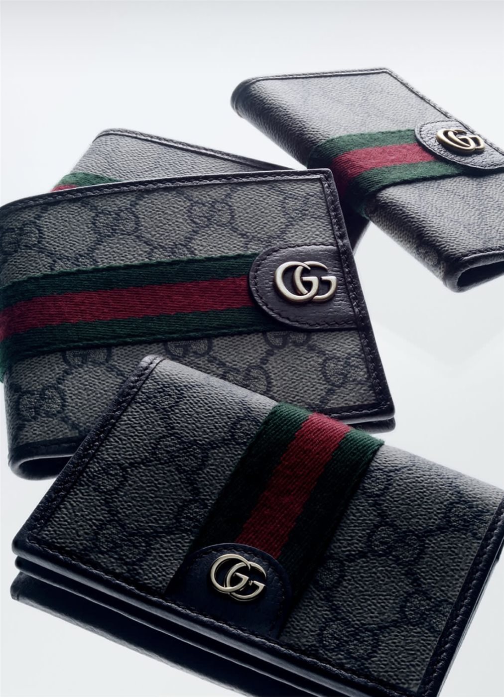 ولم تقتصر الإصدارات الجديدة على الحقائب فقط، بل شملت أيضًا مجموعة من المحافظ والإكسسوارات الجلدية الصغيرة، التي تعكس الفلسفة نفسها القائمة على الأناقة العملية. فقد جاءت المحافظ بتصاميم مدمجة، مصنوعة من الجلد المحبب أو قماش GG، ومزينة بشعار GG المعدني، ما يمنحها طابعًا أنيقًا يصلح للاستخدام اليومي أو كخيار فاخر للهدايا. هذه القطع تؤكد اهتمام غوتشي بالتفاصيل الدقيقة، سواء من حيث جودة الخامات أو التشطيبات النهائية.