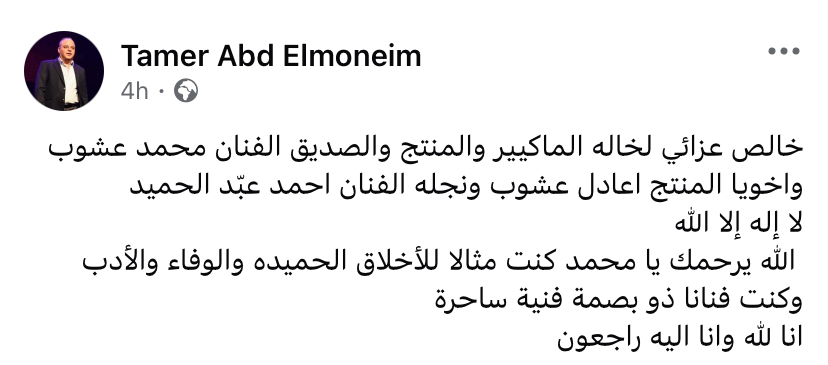 "صاحب بصمة فنية ساحرة".. نجوم الفن ينعون الماكيير محمد عبد الحميد بكلمات مؤثرة
