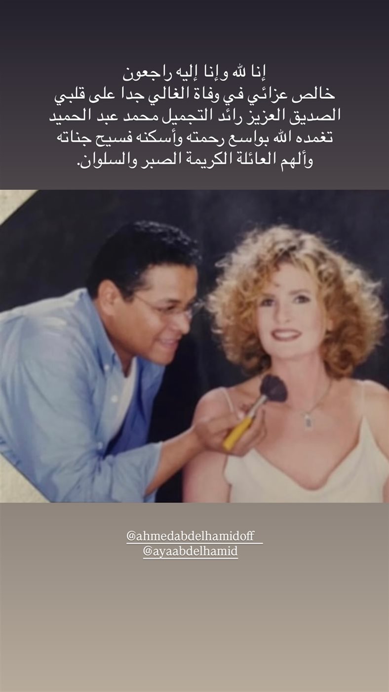 وكتبت يسرا، قائلة: “خالص عزائي في وفاة الغالي جدا على قلبي الصديق العزيز رائد التجميل محمد عبدالحميد، تغمده الله بواسع رحمته واسكنه فسيح جناته والهم العائلة الكريمة الصبر والسلوان”.
