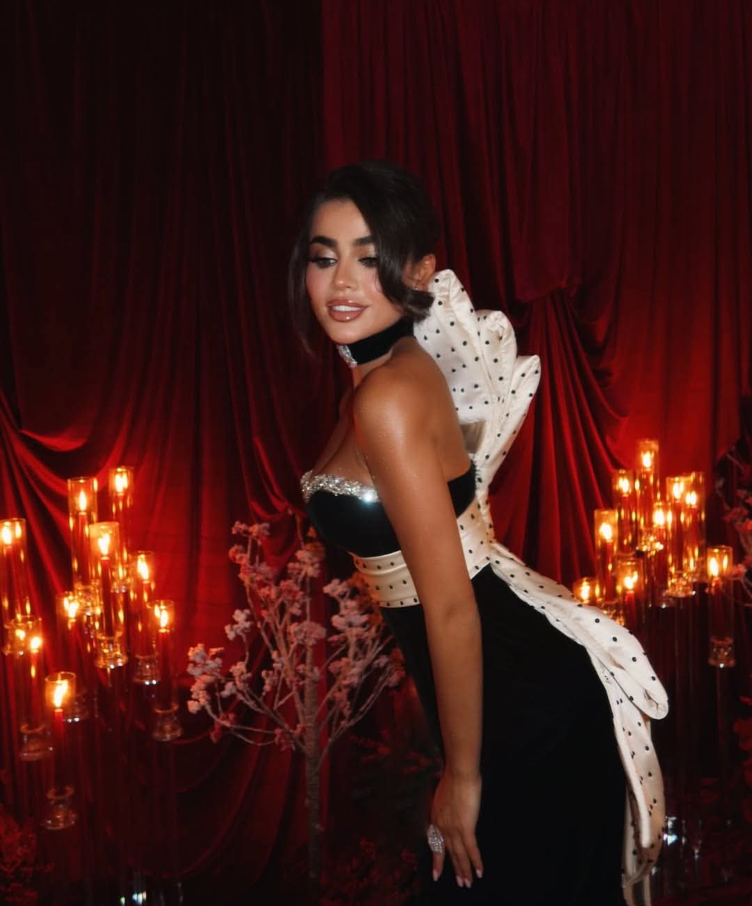 وجاء التصميم بتوقيع علامة Sabina Bilenko المعروفة بابتكاراتها الجريئة التي تجمع بين الرقي والاختلاف، ما أضفى على اللوك شخصية واضحة ومميزة.